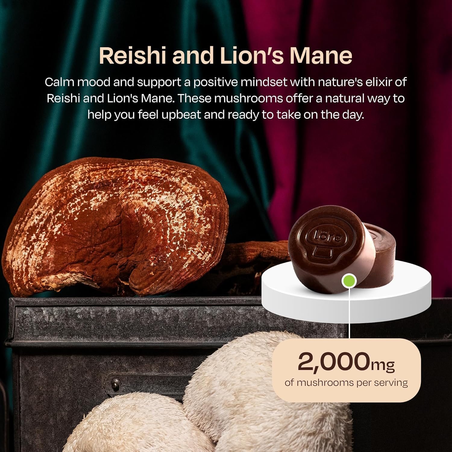 SYNERGISTIC MUSHROOM FUSION: Unleash the combined power of Reishi and Lion’s Mane as they synergistically enhance their adaptogenic properties. Together, they support the endocrine and nervous systems, promoting a balanced cortisol response and instilling a sense of vitality. Feel upbeat and ready to conquer the day with every indulgent nibble.
