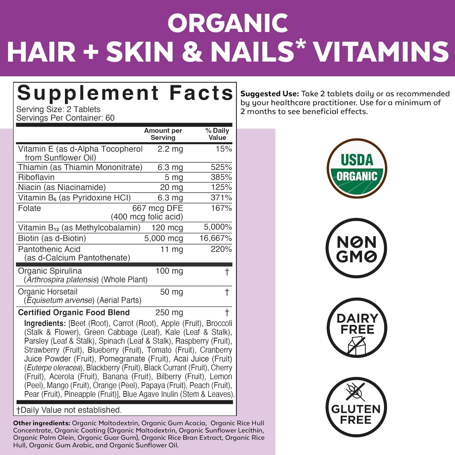 Organic Hair Skin and Nails + Elderberry, Vitamin C & Zinc Bundle, Made with Biotin 5000mcg for Healthy Hair, Elderberry for Antioxidant & Immune Support