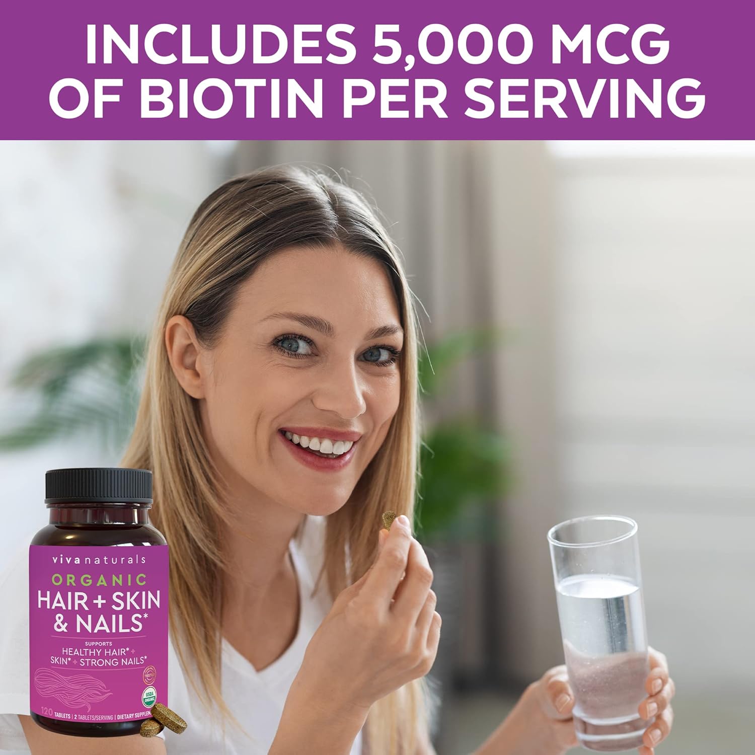 Organic Hair Skin and Nails + Elderberry, Vitamin C & Zinc Bundle, Made with Biotin 5000mcg for Healthy Hair, Elderberry for Antioxidant & Immune Support