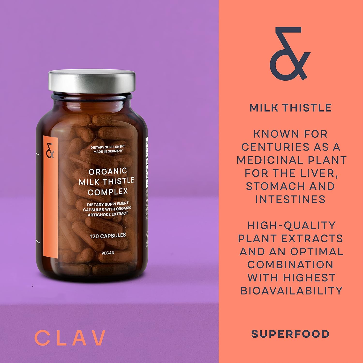 Detox Supplement – CLAVs Liver Support Supplement with milk thistle and artichoke contains 400 mg organic milk thistle extract (rich in silymarin) and 40 mg artichoke extract (min. 2.5% cynarin) per capsule – 120 capsules per jar.
