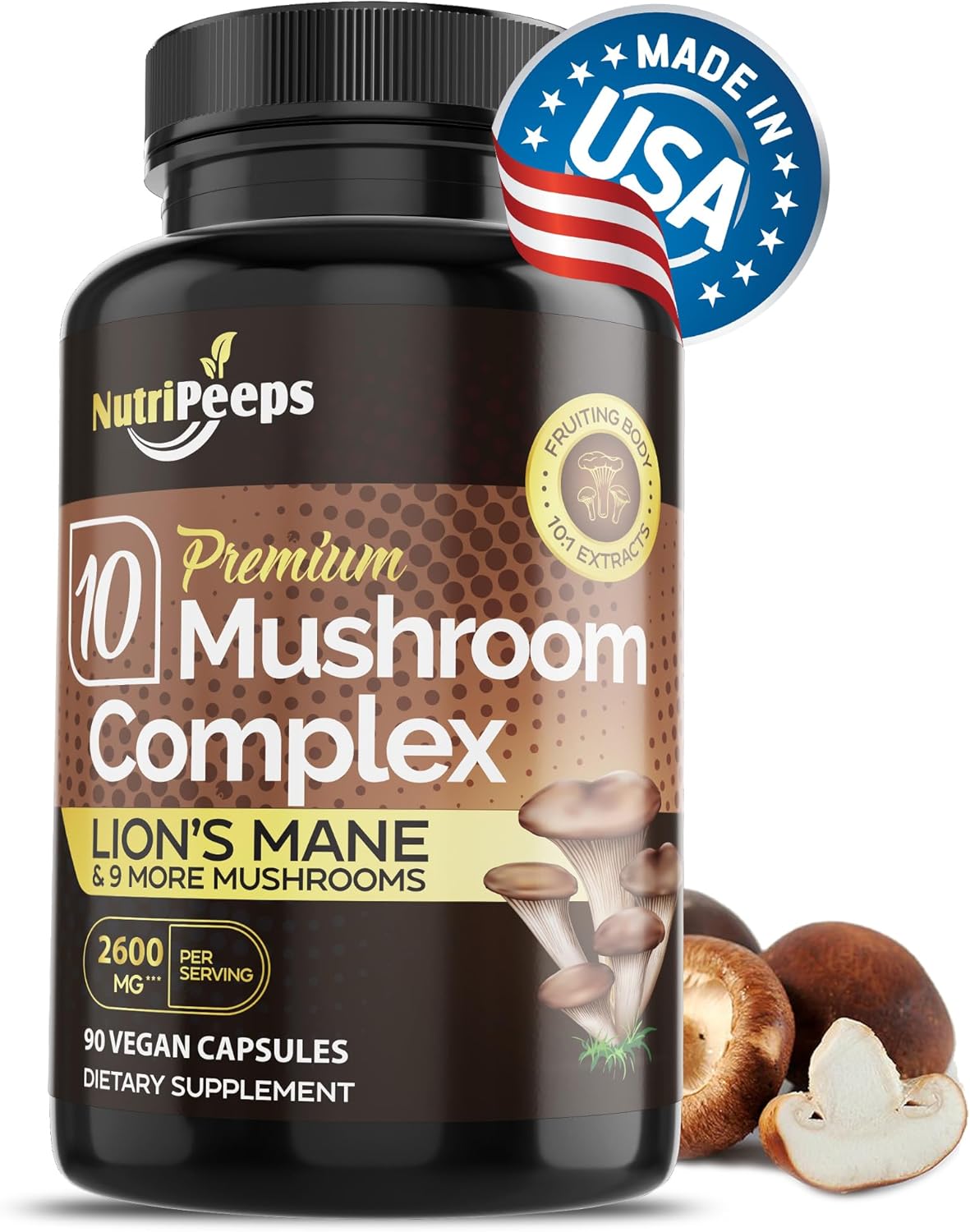 Holistic Health – Incorporate a powerful blend of the 10 most potent mushrooms with NutriPeeps Mushroom Complex Capsules! Including Cordyceps, Reishi, Lions Mane, Chaga, Maitake, Shiitake, Enoki, Agaricus, Oyster and Turkey Tail mushrooms for a boost in your wellbeing!