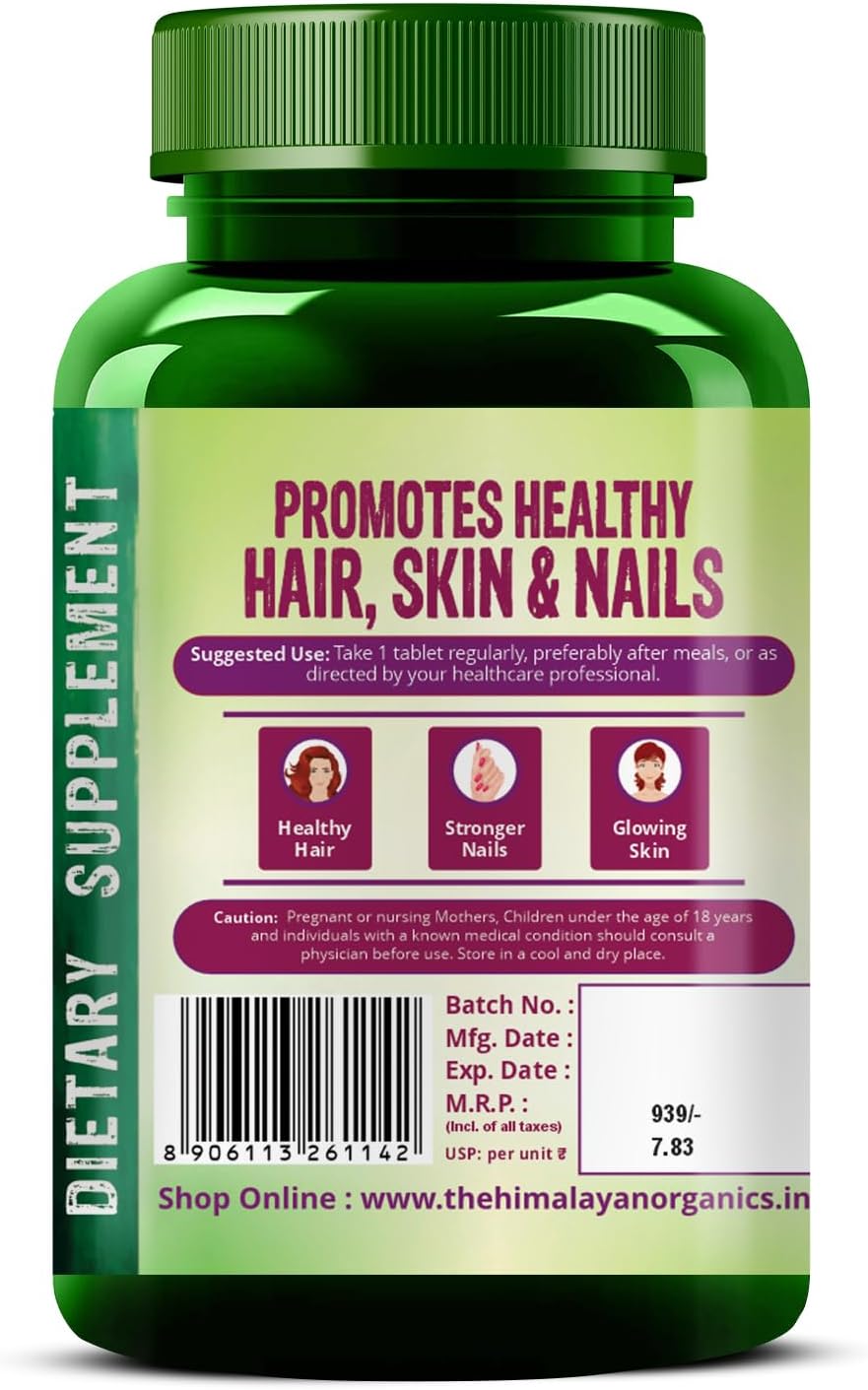 BOOSTING SKIN HEALTH: Himalayan Organics Biotin tablets contain vital micronutrients that help in skin nourishment while enhancing skin’s glow. The vitamin’s influence on the skin may stem from its effect on fat metabolism. This process is important for maintaining healthy skin, and it may be impaired in people with low levels of biotin.