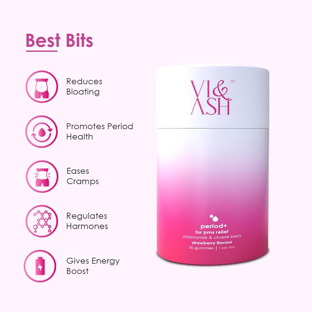 Who can take period+ gummies: Women who have hit puberty and are struggling with painful cramps, PMS (Premenstrual syndrome), bloating & or looking to improve their overall period health can consume our period+ gummies.