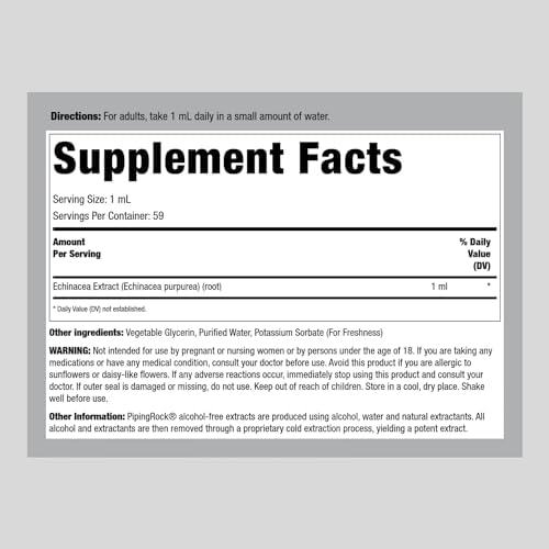 Piping Rock Echinacea Tincture Drops | 4 fl oz | Liquid Extract Supplement | Premium Botanical Herb | Alcohol Free, Non-GMO, Gluten Free