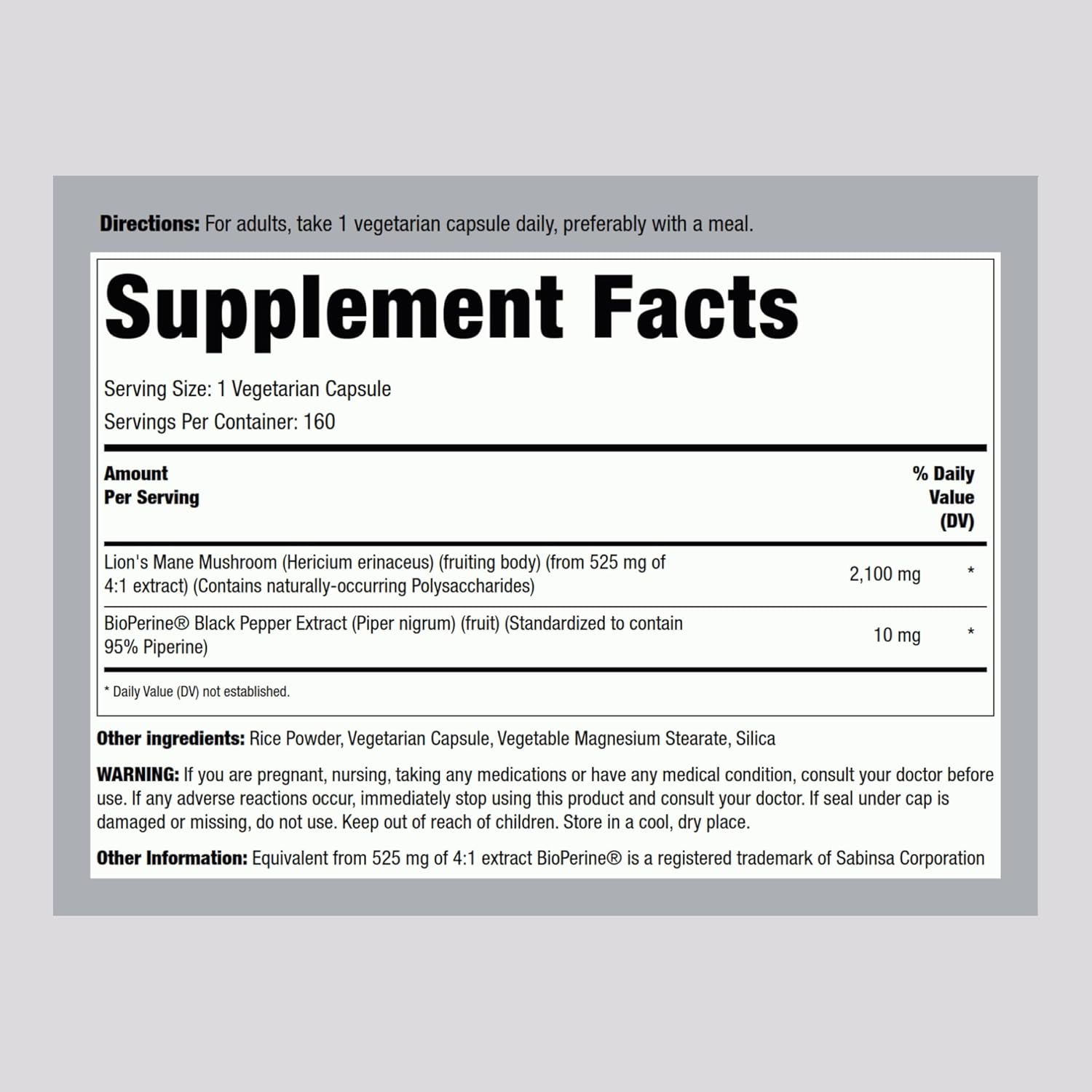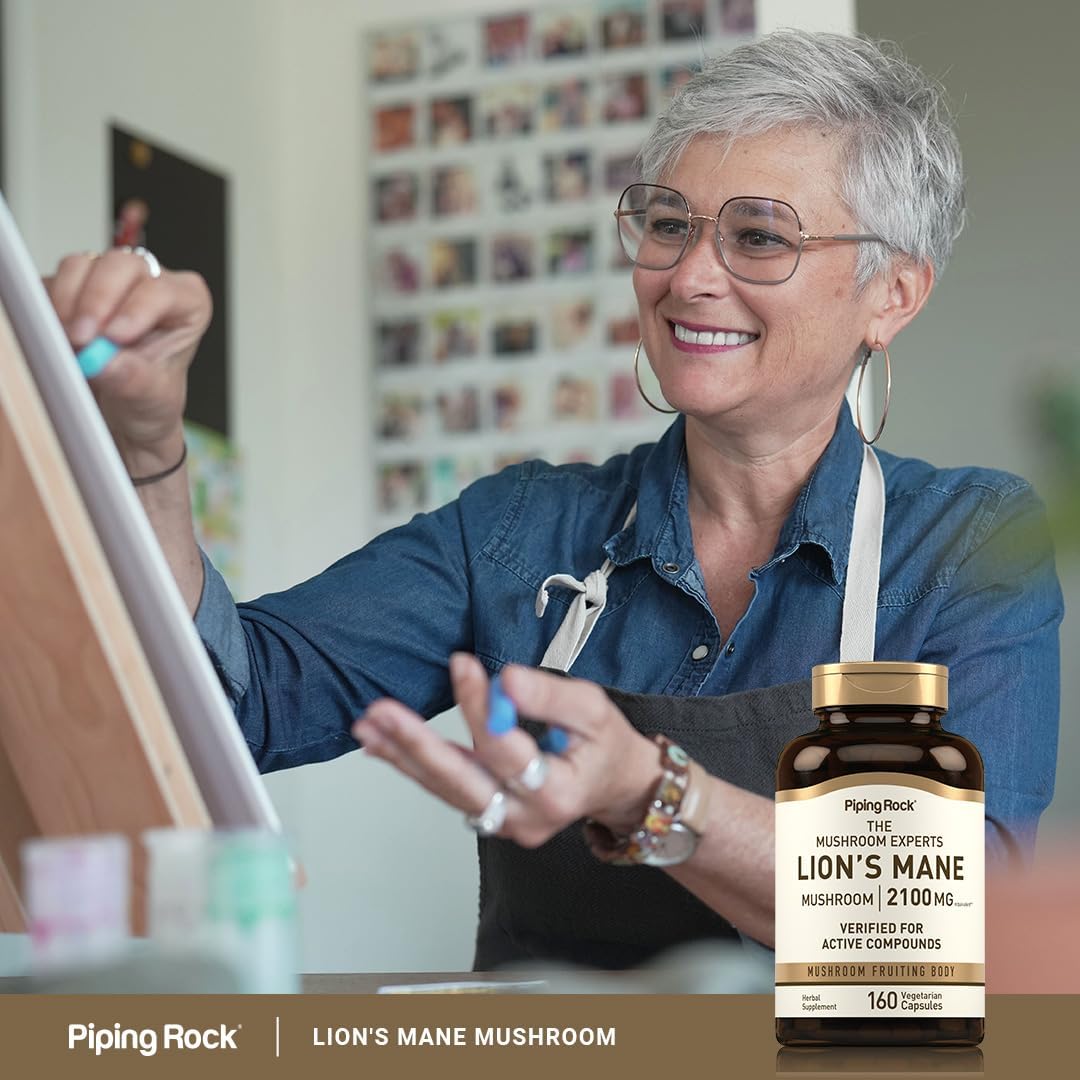 Piping Rock Lions Mane Supplement Capsules | 2100mg | 160 Count | Vegetarian, Non GMO & Gluten Free Extract