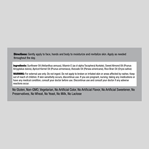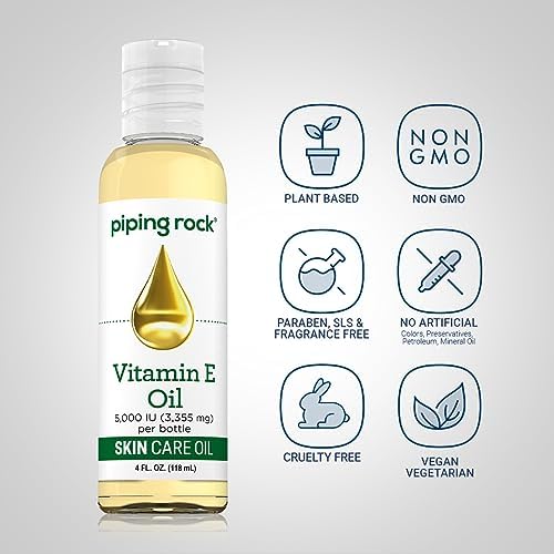 Piping Rock Vitamin E Oil 5000 IU | 4 floz | Skin, Hair, & Face Oil | Nourishing Vegetarian Oil Complex
