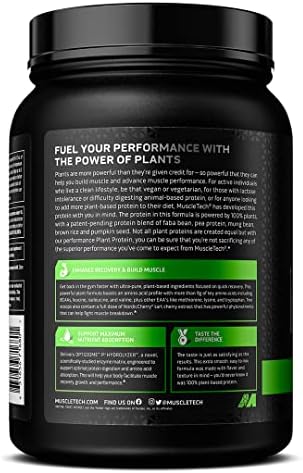 Plant-Based Performance Protein, MuscleTech Platinum Plant-Based Performance Protein Powder, 25g Protein, 5 Plant Protein Sources, Vanilla 20 Servings