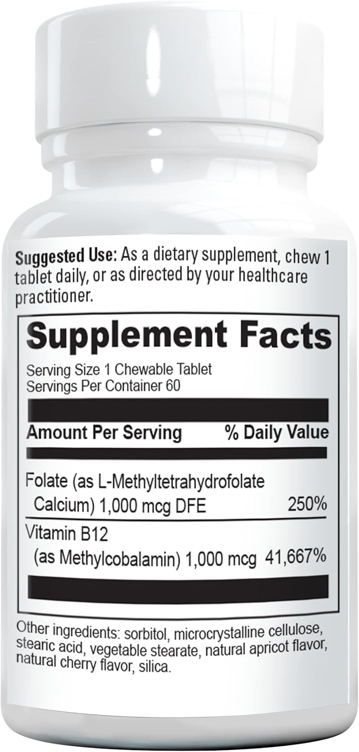 This chewable active B12 with l-5-MTHF includes the active form of vitamin B12, methyl cobalamin