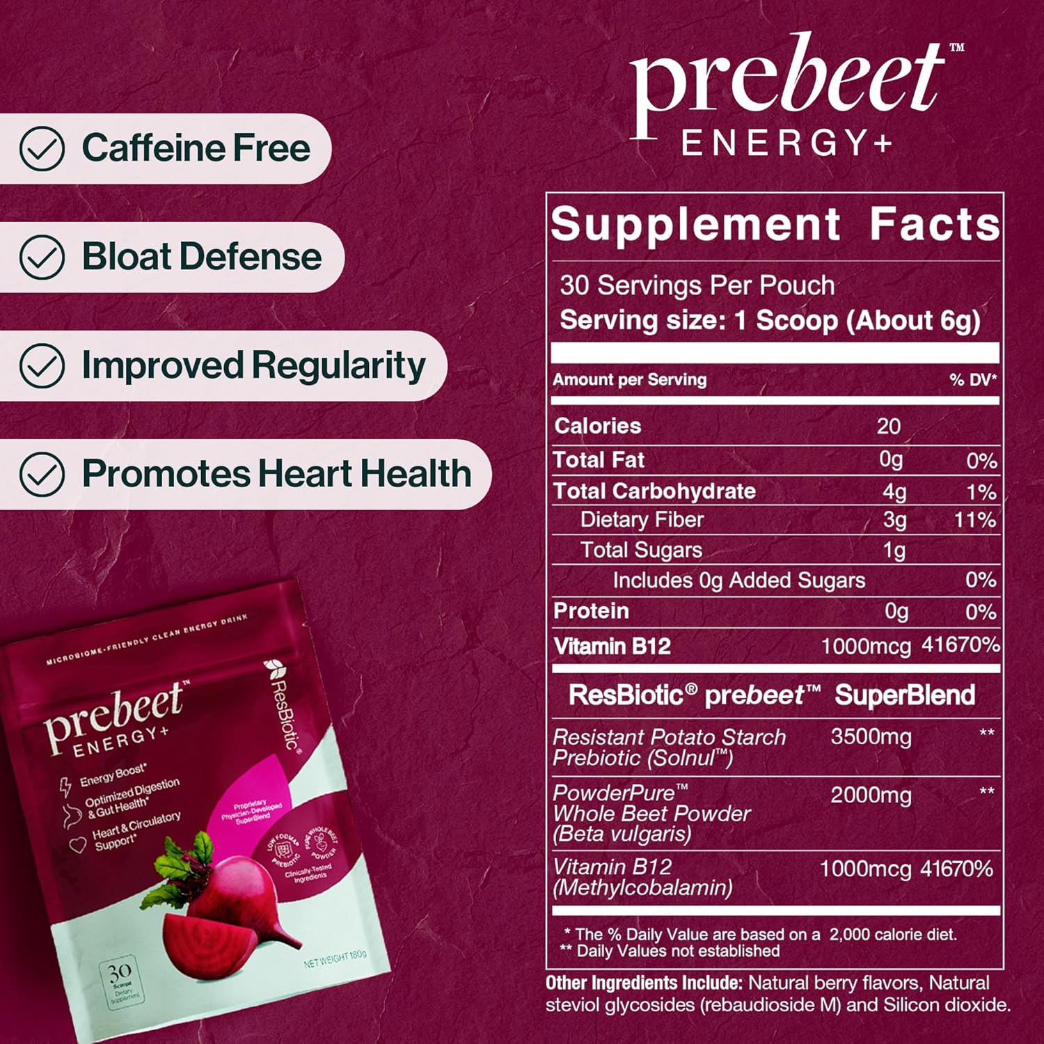 Be the first to review “prebeet Caffeine Free Drink Mix Natural Energy Prebiotic Supplement for Bloat & Gut Digestion Support, Skin, Heart, & Immune Health – Non GMO, Gluten Free, Vegan, Non Artificial, Low FODMAP- 30 Serv.”