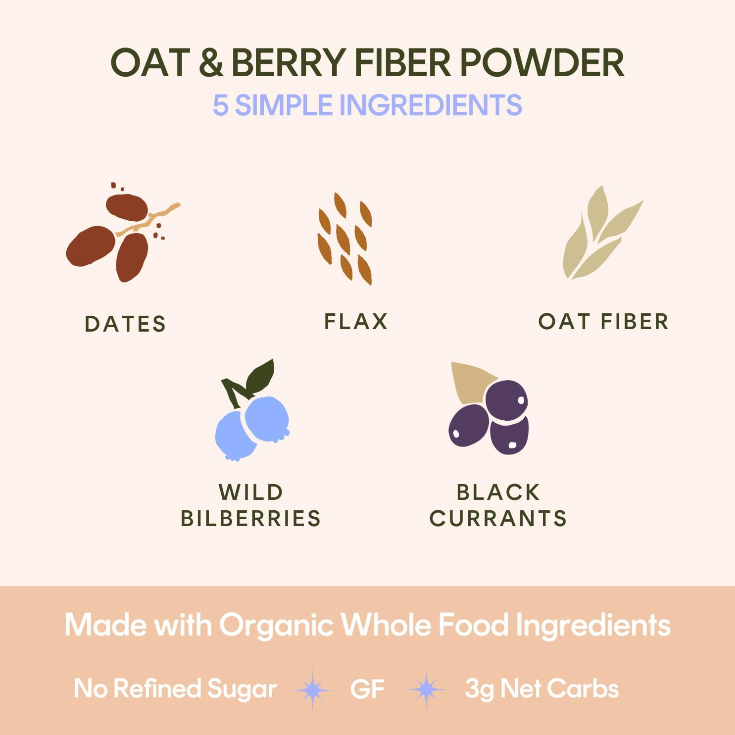 Prebiotic Fiber Powder with Real Berries Oat Fiber and Ground Flax for Gut Health & Constipation Relief – Soluble & Insoluble Fiber from Whole Foods – 6g of Fiber – 8oz 14 Servings