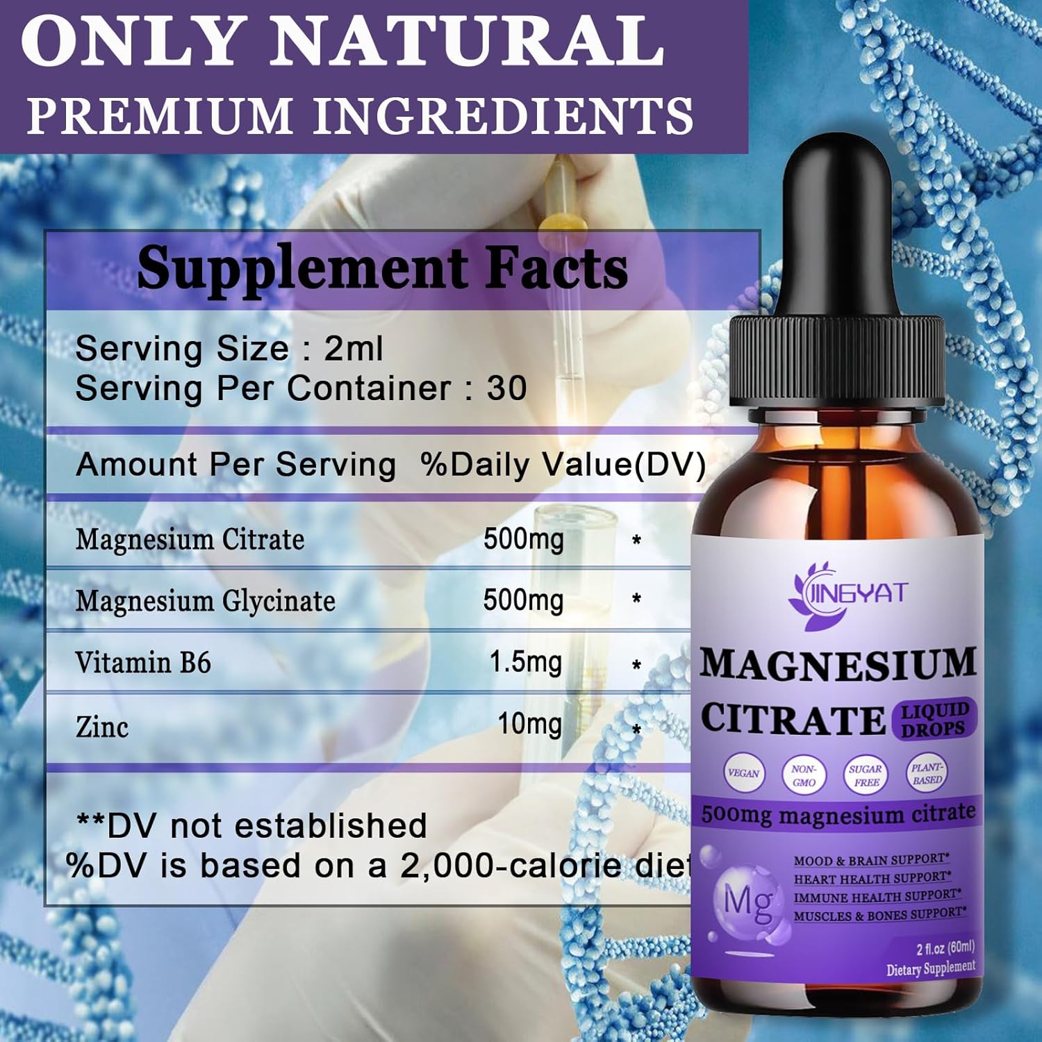 High Absorption: Our magnesium liquid drops offer high absorption of magnesium citrate and magnesium glycinate, ensuring that your body receives the maximum benefits quickly and efficiently.