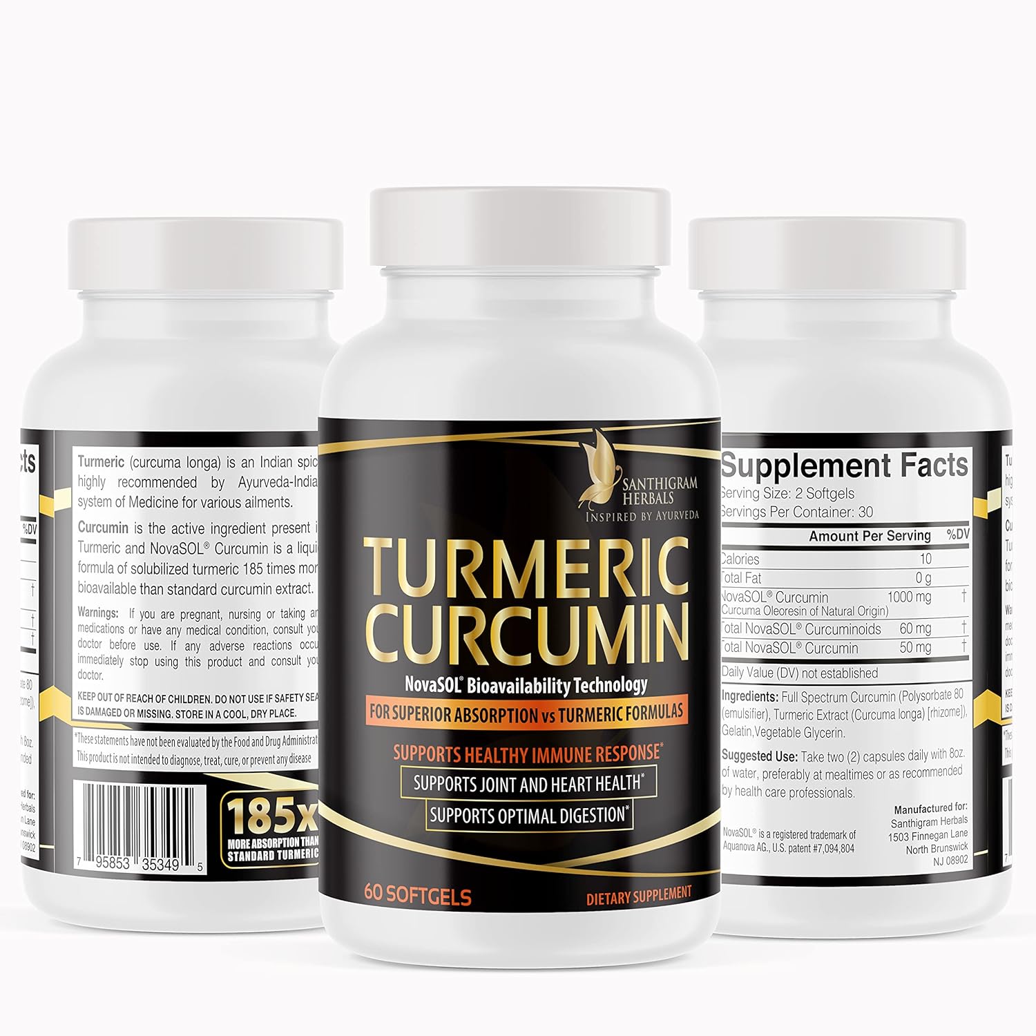 More Bioavailability and Better Absorption: Experience unparalleled Level of Benefits with Our patented NovaSOL Turmeric Curcumin supplement With 27 Times More Potent Than Bioperine and 185 times more Bioavailable Than Turmeric Black Pepper Capsules. It maximizes the body’s absorption of curcumin extract allowing you to retain the benefits for a full 24 hours, as proven by clinical tests.