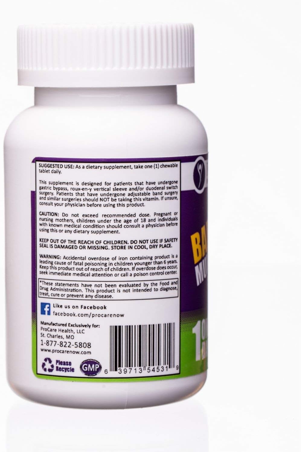 ProCare Health – Bariatric Multivitamin Chewable – 45mg Iron – Citrus – 1 Once Daily – 30ct Bottle