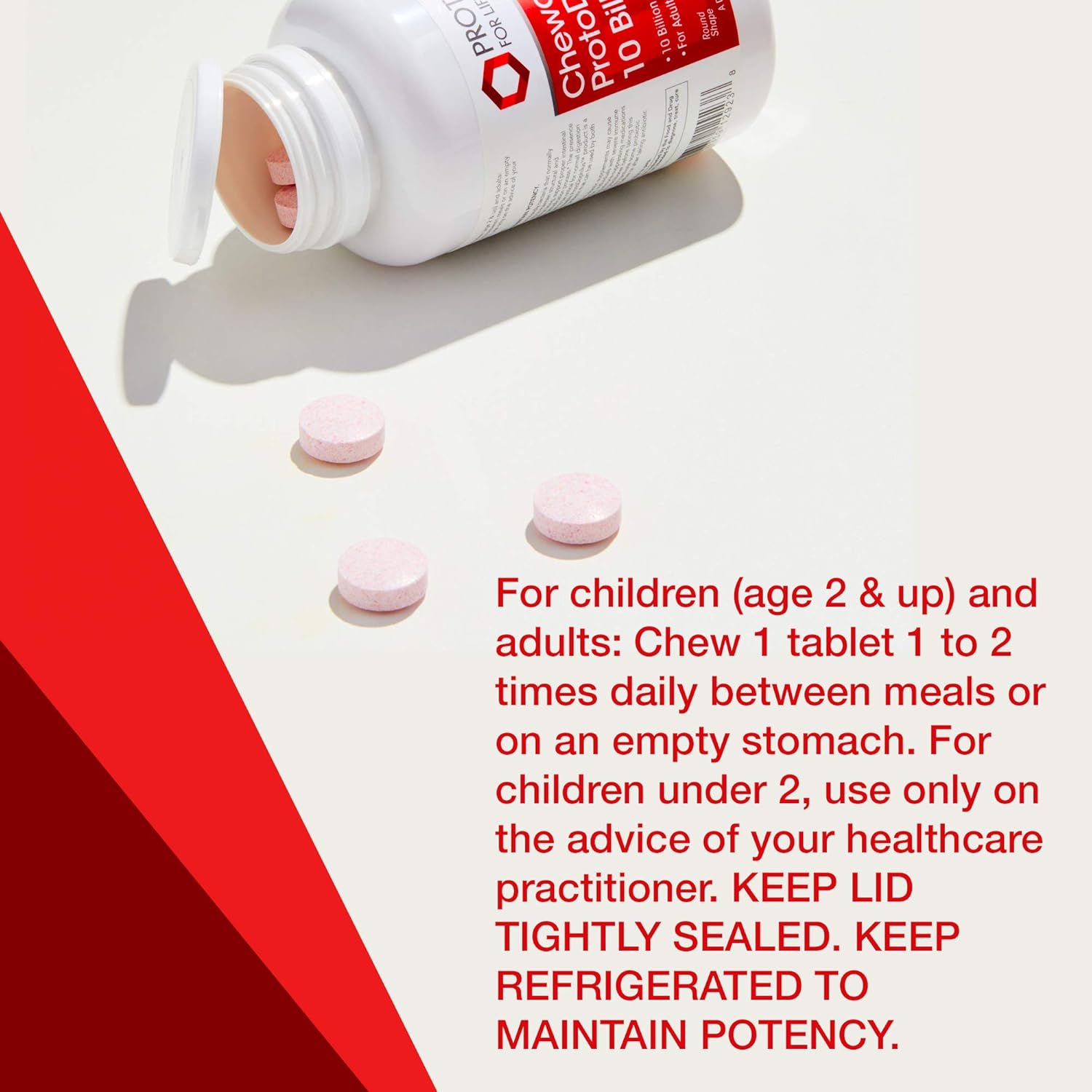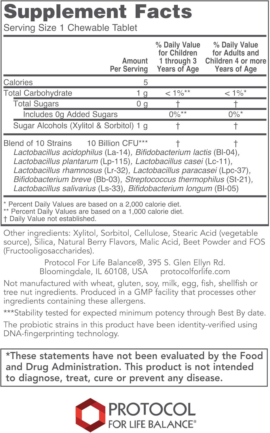Protocol Chewable Protodophilus – 10 Billion CFU Probiotic – Chewable Tablet for Adults & Kids – for Digestive Health, Detox & Cleanse* – Vegan & Halal – 60 Chewables