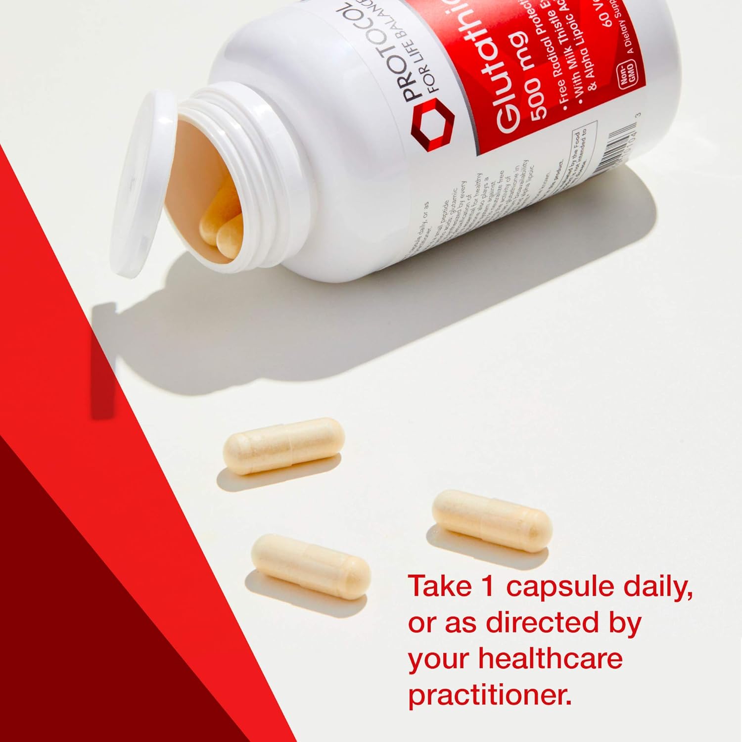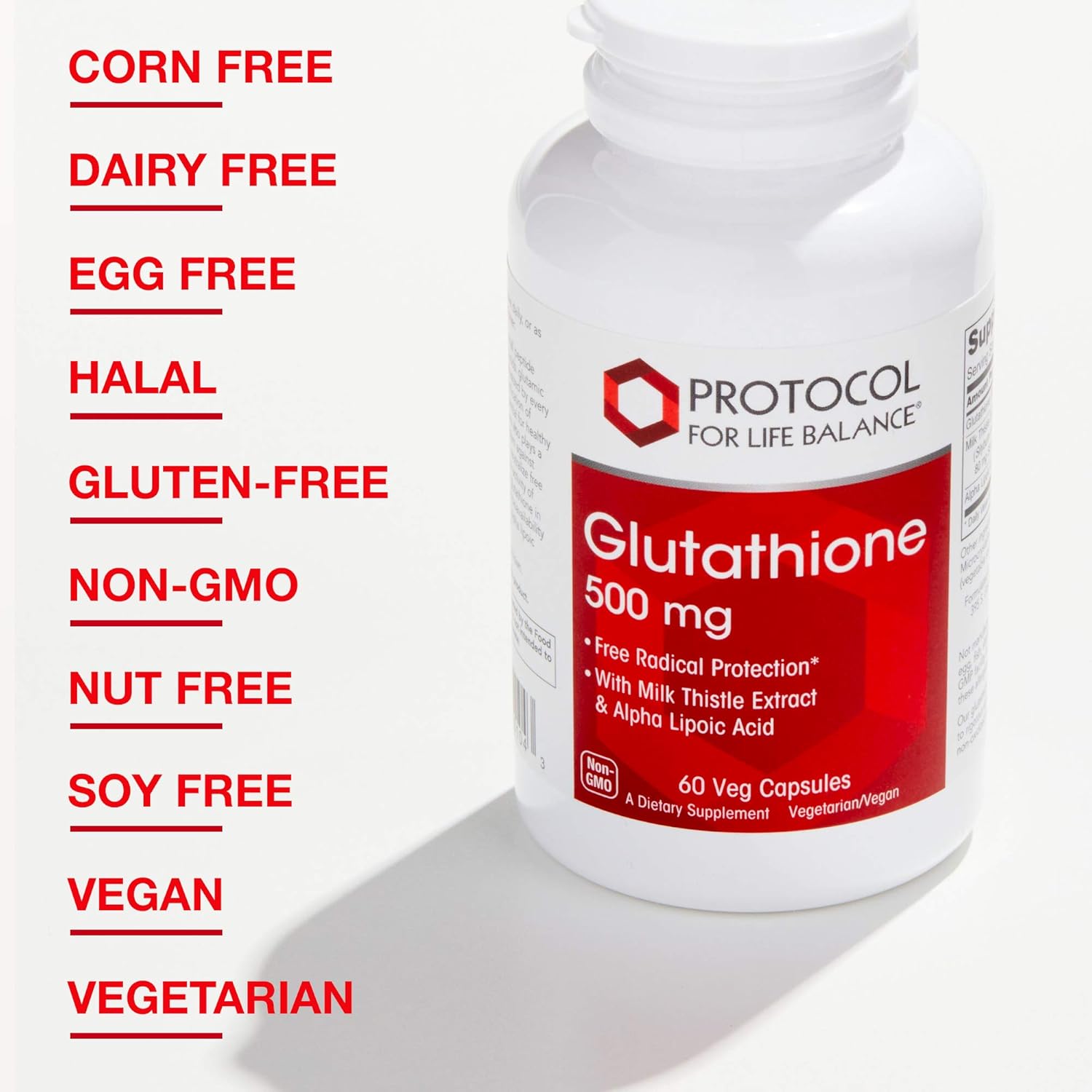 Protocol Glutathione 500mg Immune Support* – with Milk Thistle Extract & Alpha Lipoic Acid – Reduced Glutathione – Made without Gluten, Dairy-Free, Halal, Kosher – 60 Veg Caps