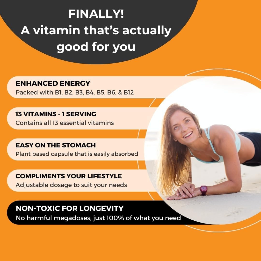 PurePath NON-TOXIC Adult Multivitamin – 13 Vitamins – 100% RDA – No Harmful Megadoses – with B6 & B12 – Supplement for Optimal Energy, Focus, and Longevity – 60 Capsules – 30 Day Supply