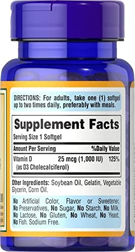 Puritan’s Pride Vitamin D3 1000 Iu Softgels, 100 Count