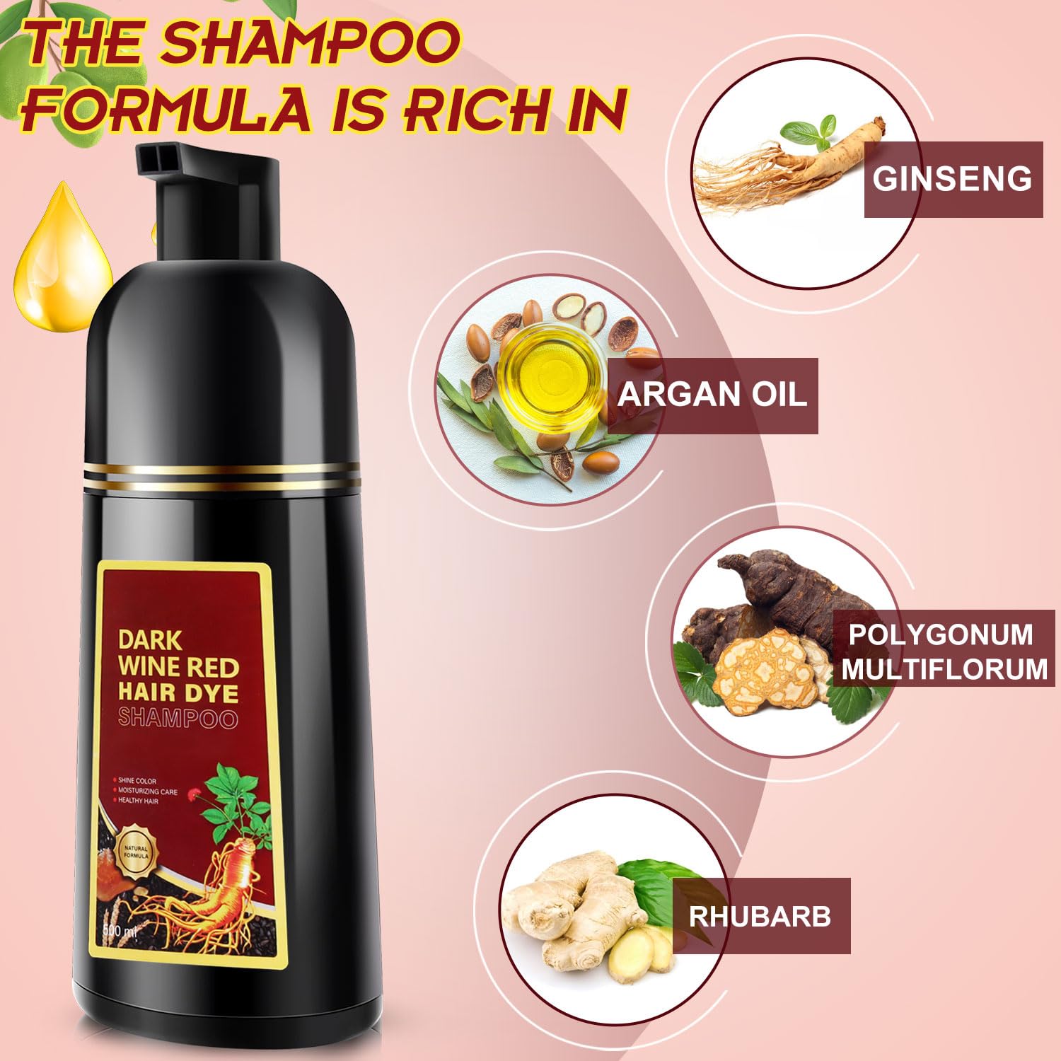 QWXPLD Dark Brown Hair Dye Shampoo 3 in 1, Herbal Ingredients Shampoo Hair Dye for Women Men, Grey Coverage Shampoo 16.9Fl Oz (Chestnut) (Dark Wind Red)