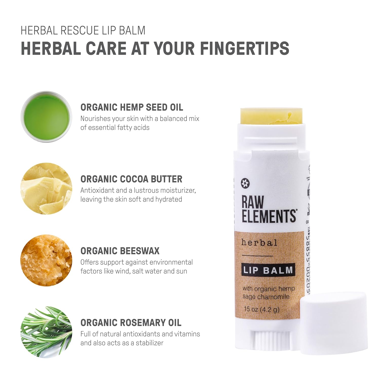 Raw Elements Organic Herbal Rescue Lip Balm, 0.15 oz (Pack of 3)