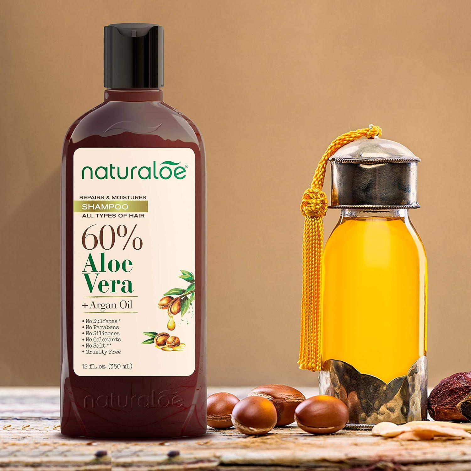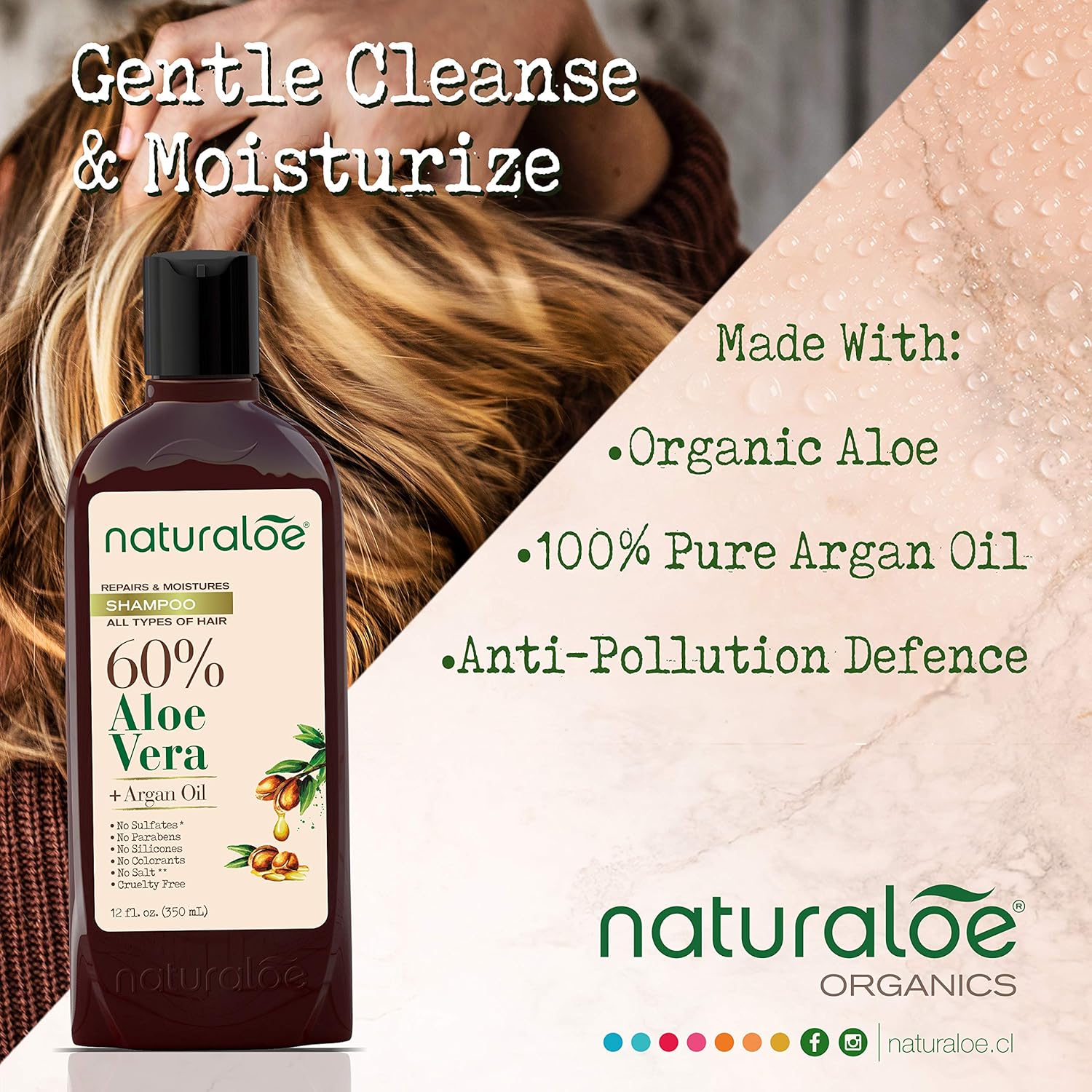 Repairs & Moistures Shampoo + Conditioner – 100% Vegan Formula Infused with Aloe Vera Gel + Argan Oil, EcoFriendly, Cruelty Free, No Parabens, No Silicones, No Sulfates – 24 fl oz