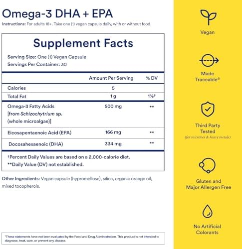 Brain & Heart Health Support: DHA is a predominant fatty acid in the brain, and Omega-3 DHA & EPA support brain and heart health.*