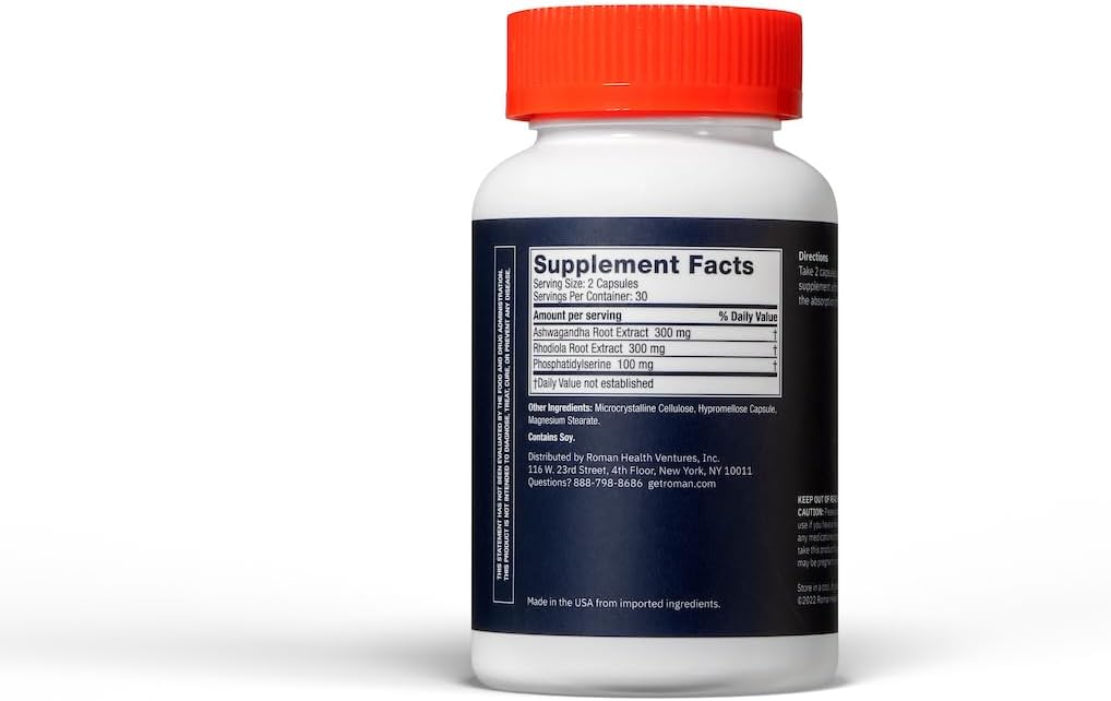 ABOUT THE PRODUCT: Help get rid of stressful feelings with the Roman Stress Relief Supplement for Men, formulated with ashwagandha.