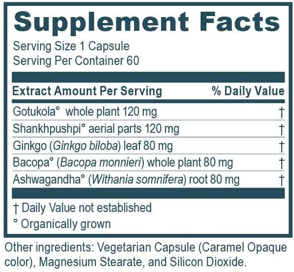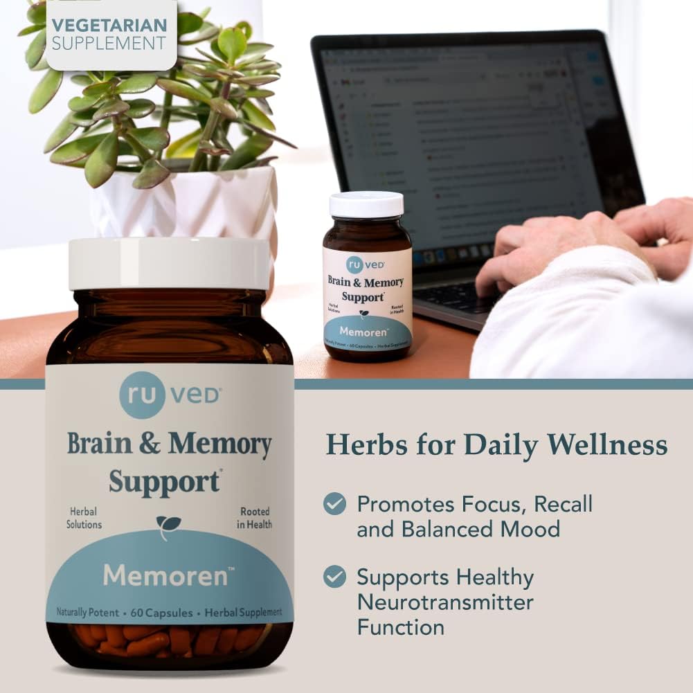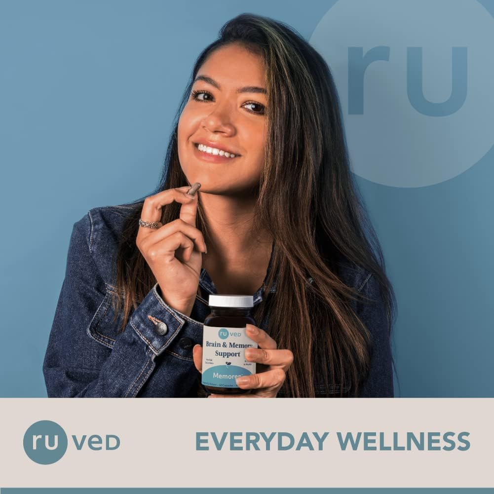 ruved Memoren, All-Natural Ayurvedic Focus and Memory Support with Ginkgo Biloba, Gotu Kola and Bacopa, Brain Health and Stress Care Supplement for Adults, 60 Vegetarian Capsules