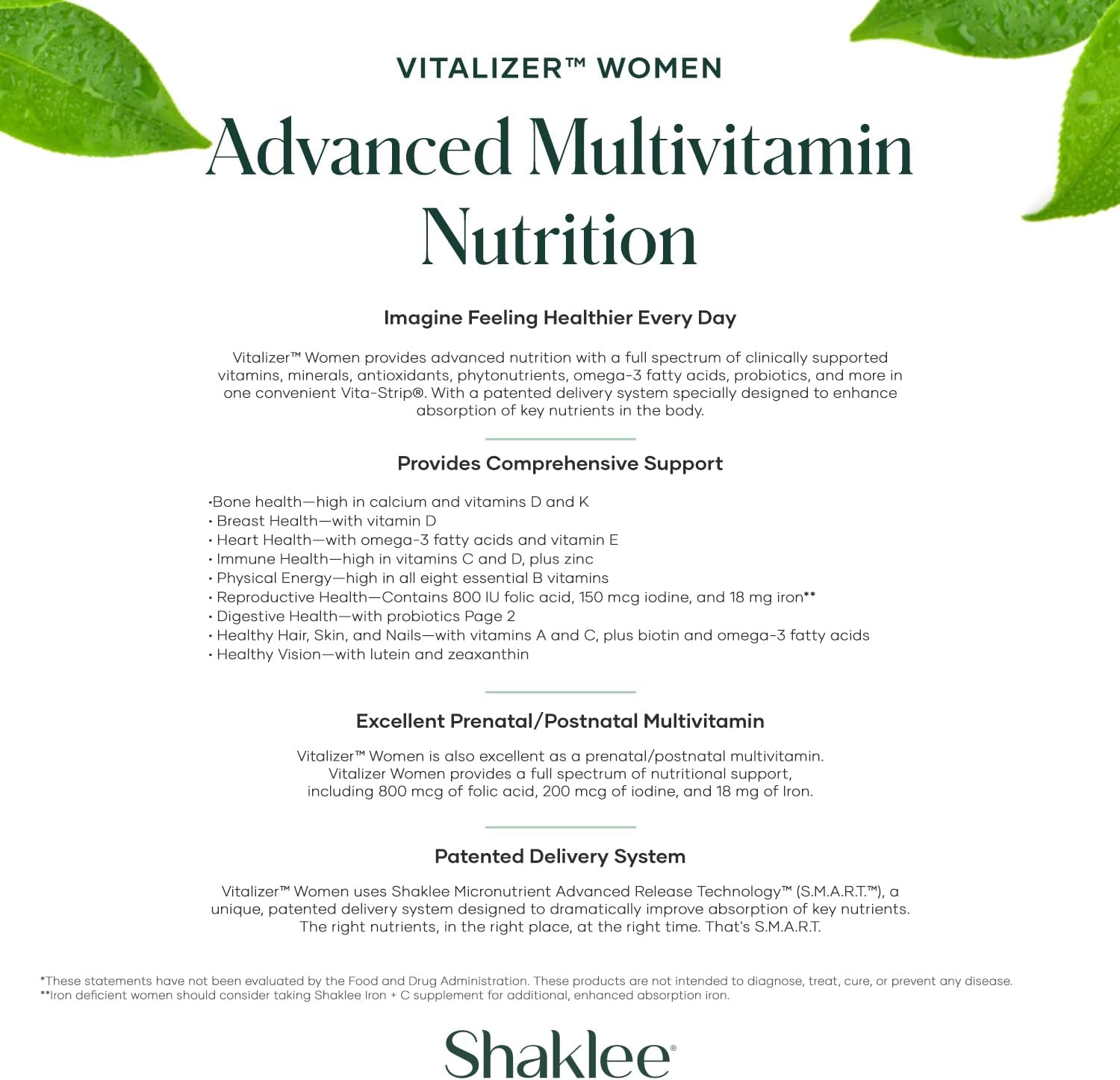 Shaklee -Vitalizer Women – Advanced Nutrition – Prenatal/Postnatal Multivitamin with Omega-3, Probiotics, and More – Supports Heart, Joint, Immune, Bone, Digestive, and Energy – 30 Vita-Strips®
