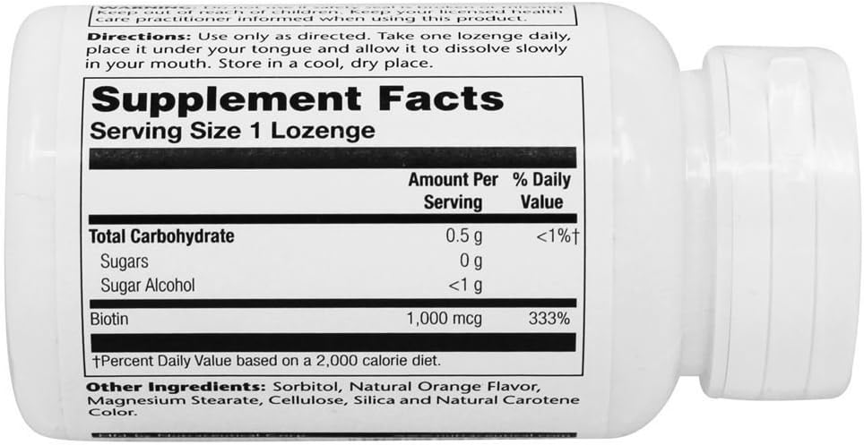 High Potency: Each 1-lozenge serving provides 1000 mcg or 333% DV of biotin (vitamin B-7)