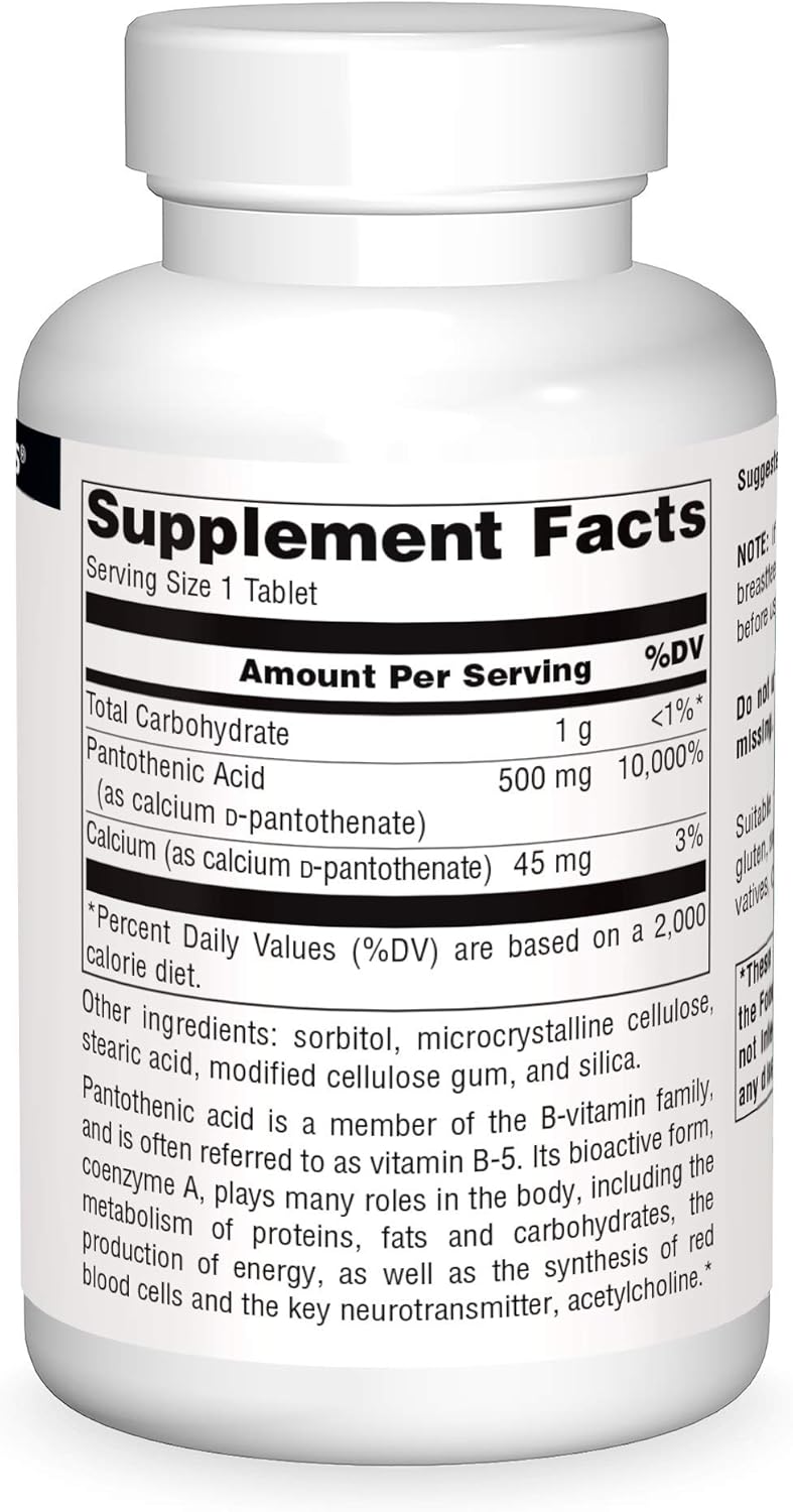 Source Naturals Pantothenic Acid 500 mg Vitamin B-5 Dietary Supplement – 100 Tablets