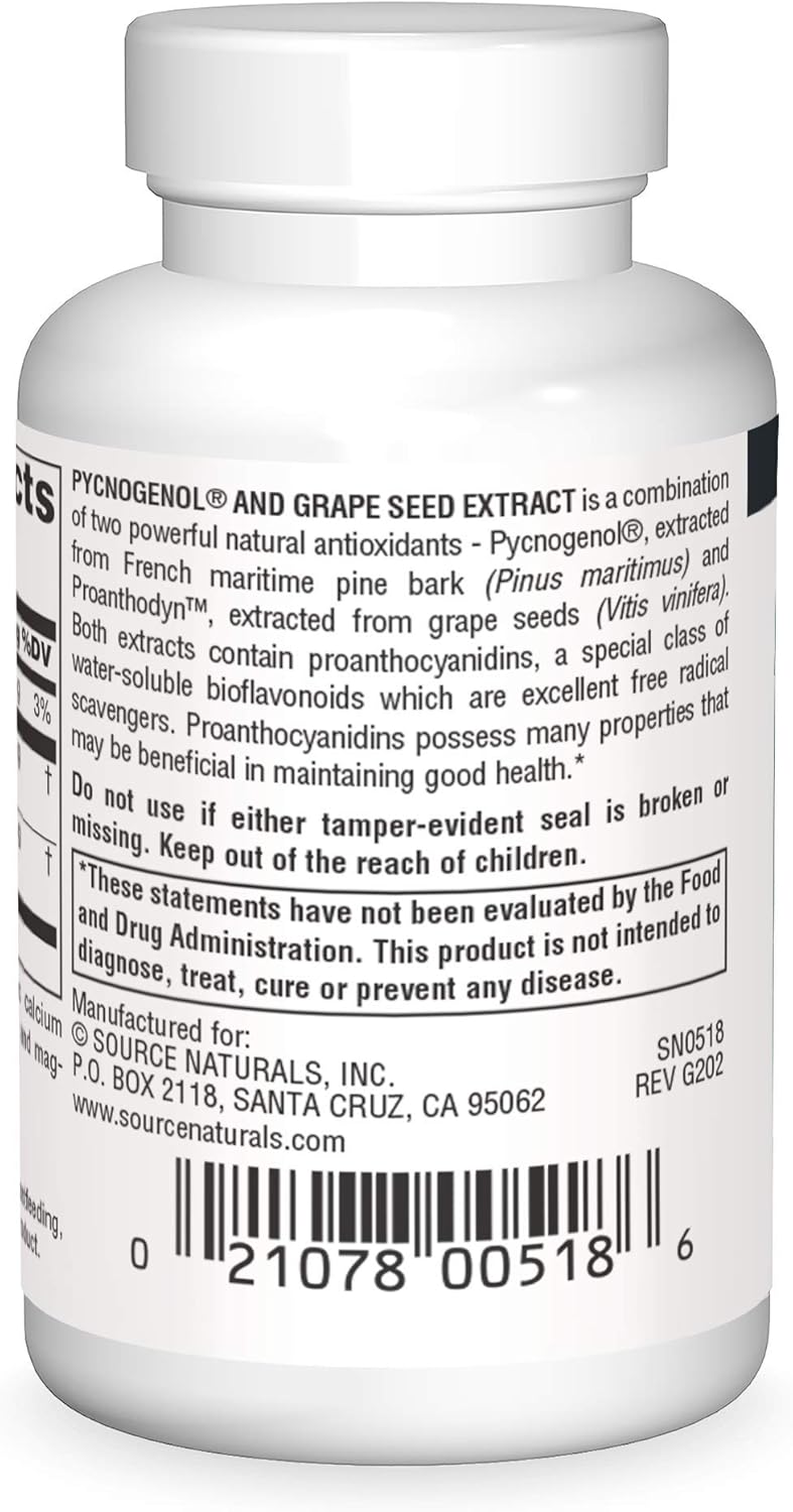 Source Naturals Pycnogenol & Grape Seed Extract 50 mg Dietary Supplement – 60 Tablets