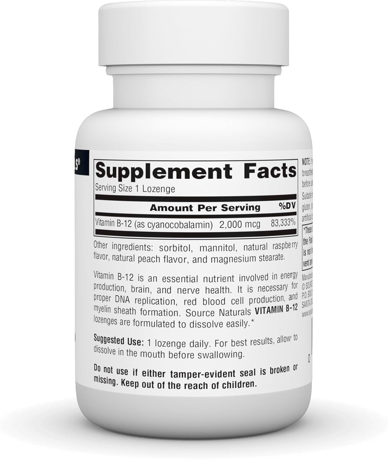 Source Naturals Vitamin B-12, 2000 mcg Supports Energy Production – 50 Lozenges