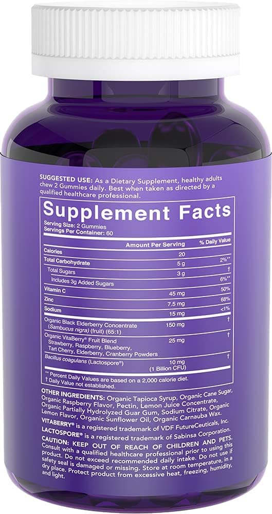 Sports Research Elderberry Gummies Concentrate with Vitamin C, Zinc & Probiotics for Immune Support & Gut Health | USDA Organic, Vegan Certified & Non-GMO Verified (120 Gummies)