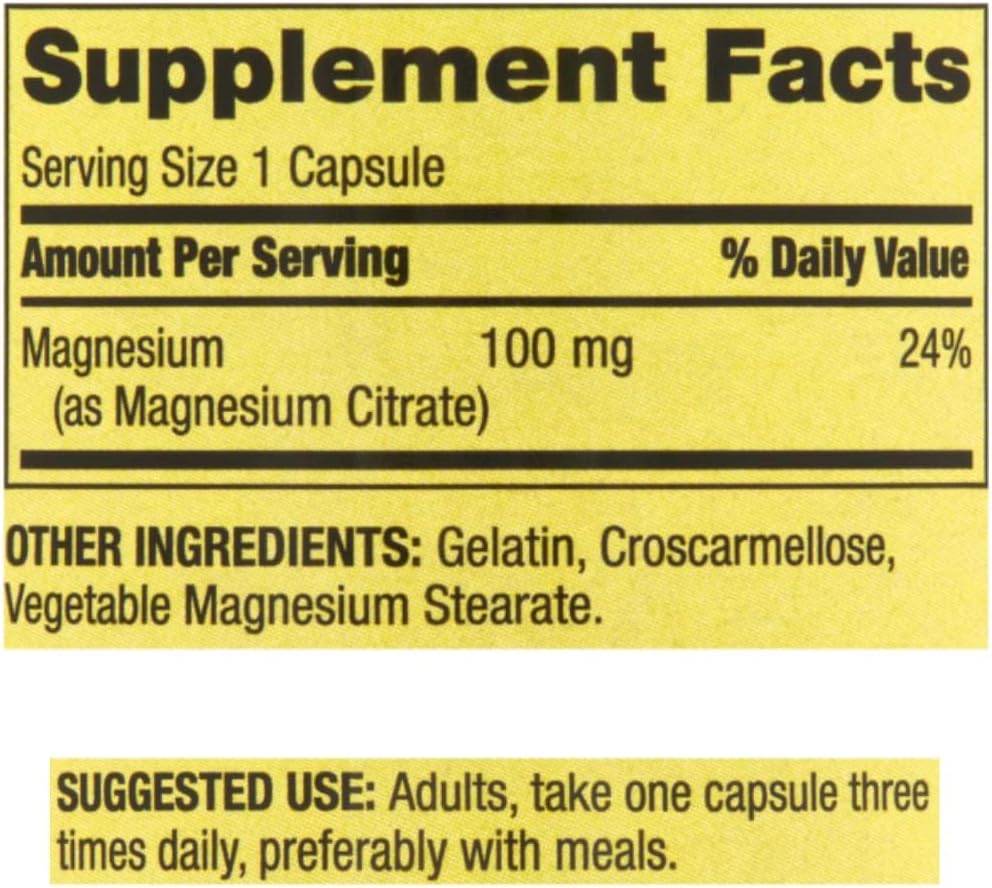 Spring Valley – Magnesium Citrate 100 mg, Rapid-Release, 100 Capsules + STS Sticker.
