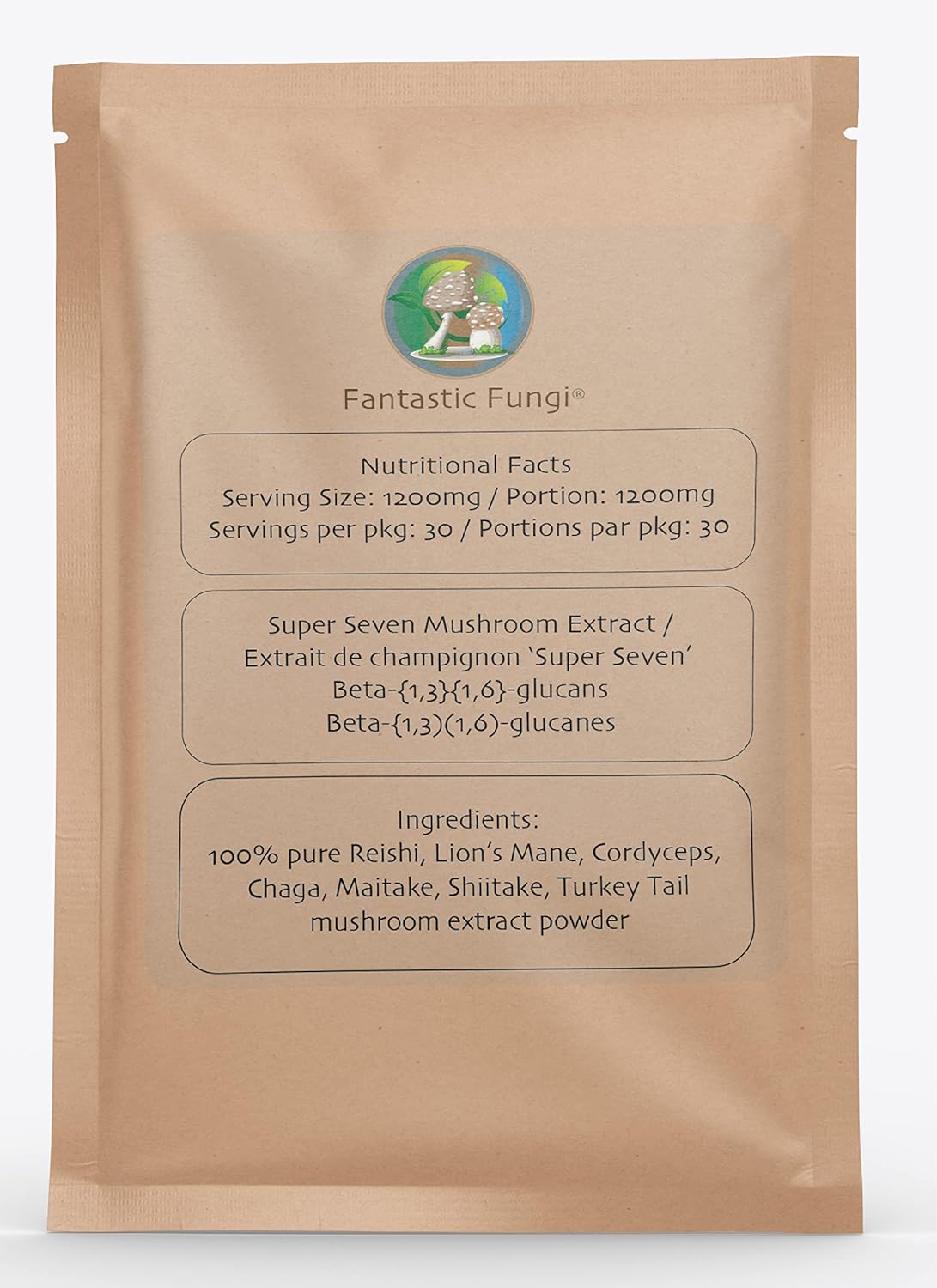 Super 7 mushroom extract powder – Fantastic Fungi® – Lion’s Mane, Reishi, Turkey Tail, Cordyceps, Shiitake, Chaga and Maitake (100 Grams)