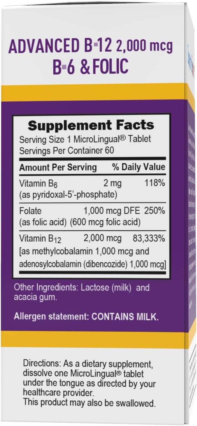Superior Source No Shot Advanced B12 (2000mcg), Quick Dissolve MicroLingual Tablets, 60 Ct, Methylcobalamin & Adenosylcobalamin, B6, Folic Acid, Cognitive Health, Nervous System, Heart Health, Non-GMO