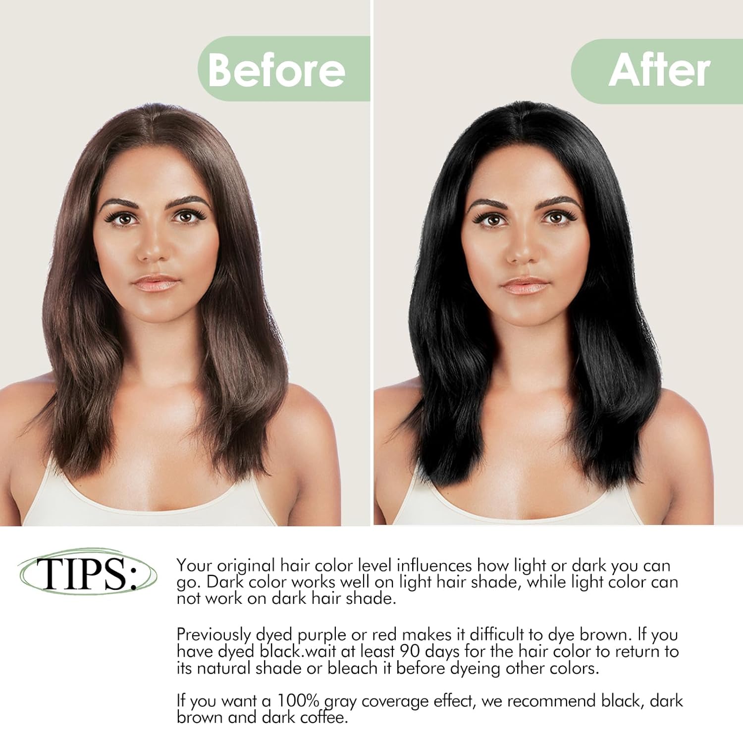 【Instant Hair Color Shampoo】No need mix in advance, all your need to do is press the bottle and apply instant hair color shampoo on Dry hair, let black hair dye sit for 10-25 minutes and rinse it, when you are satisfied with the coloring result. This dye shampoo can be used every 2-3 weeks for better result.