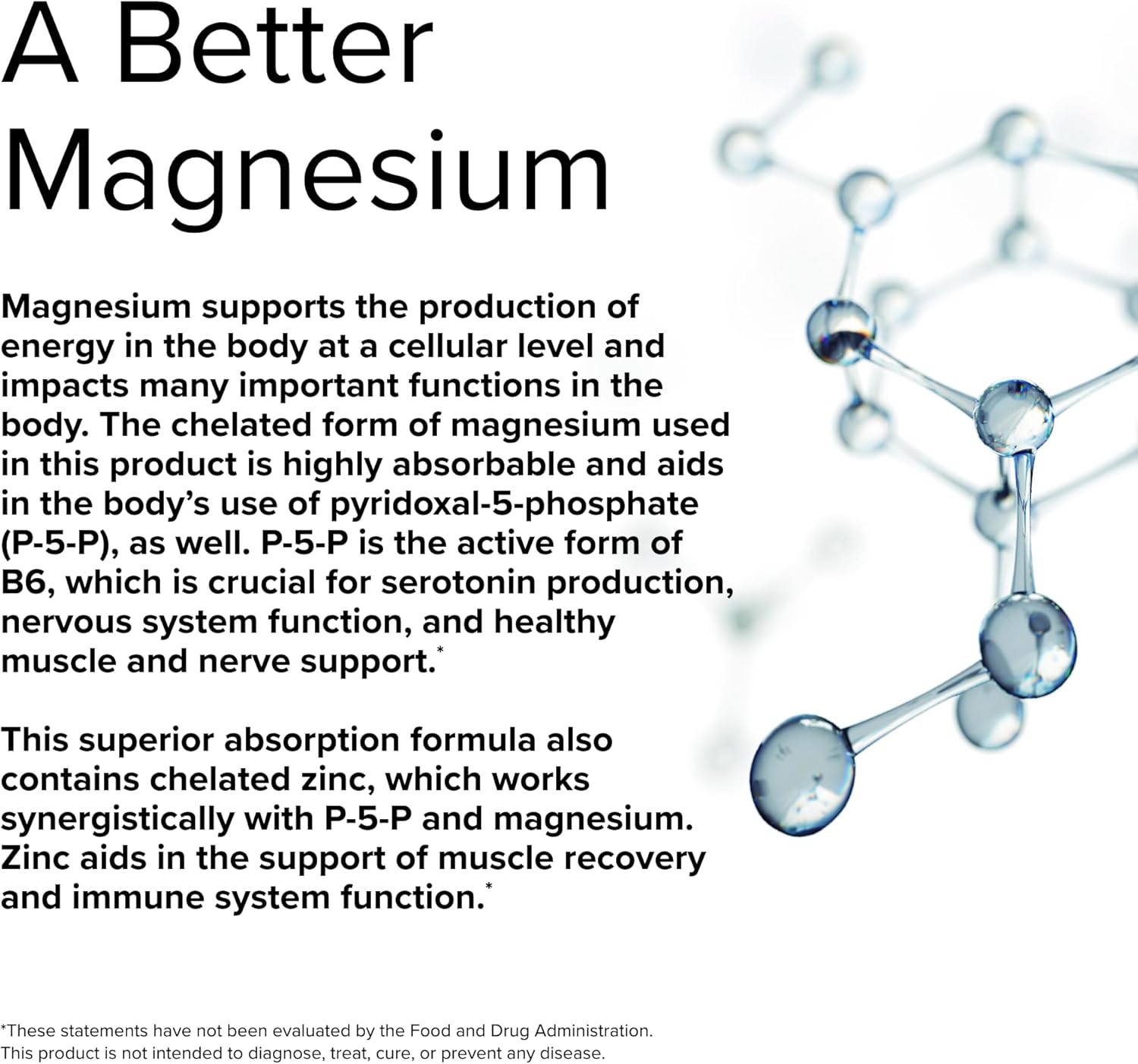 The Active Form of Vitamin B6; Unlike other forms of vitamin B6, BioActive Magnesium Complex does not require conversion by the liver, making it easily absorbed and utilized by the body; Vitamin B6 is vital to brain and muscle health.
