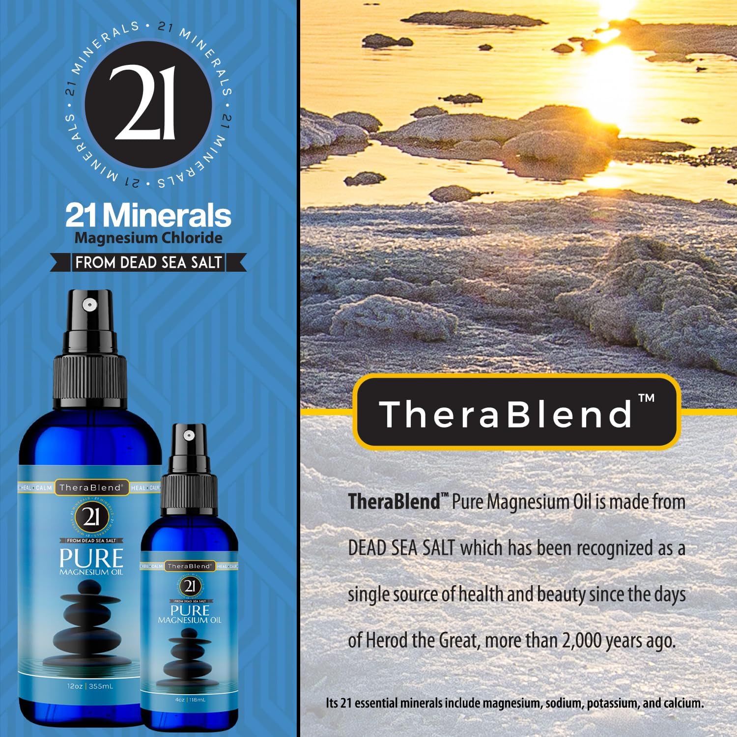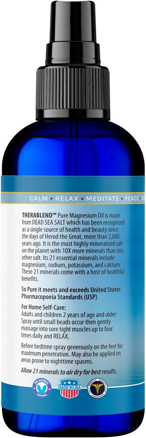 TheraBlend 21 Minerals Pure Magnesium Oil Spray – Premium Magnesium Chloride from Dead Sea Salt (12 oz)