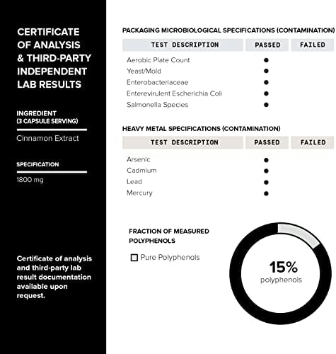 Grown and Cultivated in Southern India – Our cinnamon extract contains an unprecedented 270mg of polyphenols (other Cinnamon extracts and ground cinnamon products won’t reveal their polyphenol levels). Higher polyphenols mean more of the active compounds that give cinnamon its powerful health-promoting properties.