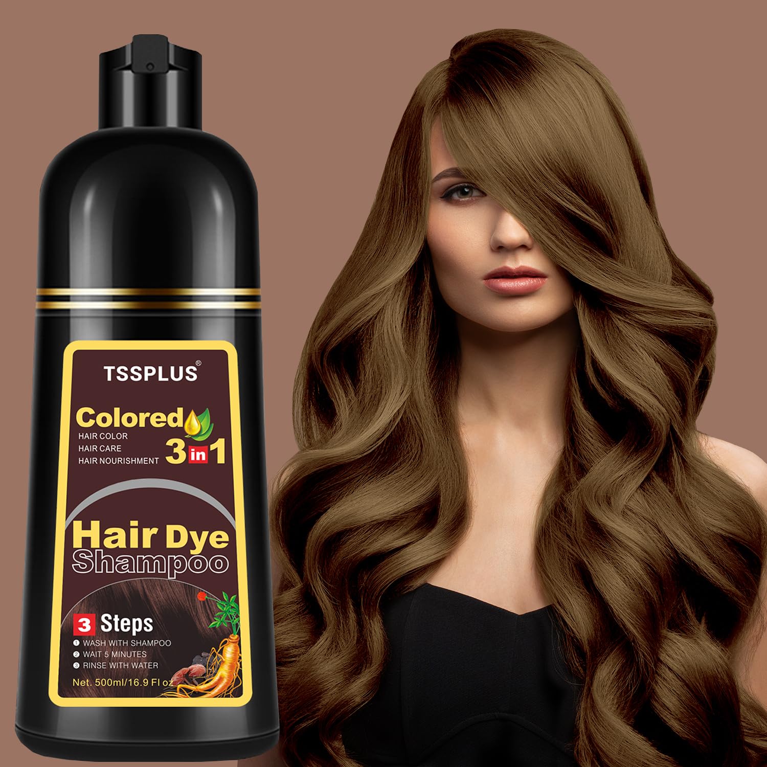 【TSSPLUS HAIR DYE SHAMPOO 3 IN 1】- Different from traditional hair dye, black hair dye shampoo not only can work as black hair dye, but also can work as hair shampoo and hair conditioner. We can do hair color and hair care at the same time, very convenient to apply at home.