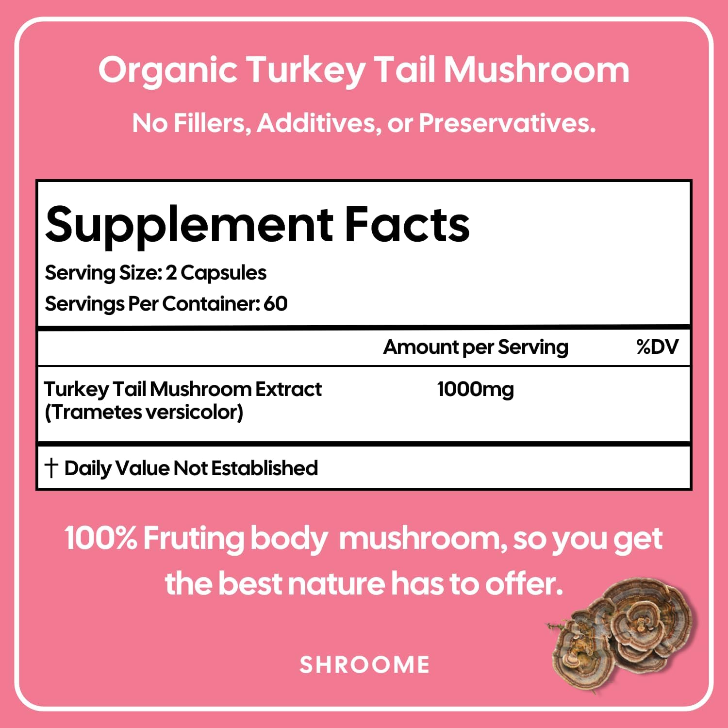 Support Your Immune System: Our powerful turkey tail mushroom capsules play a vital role in fortifying the immune system, enhancing its defensive capabilities and boosting your gut microbiome.