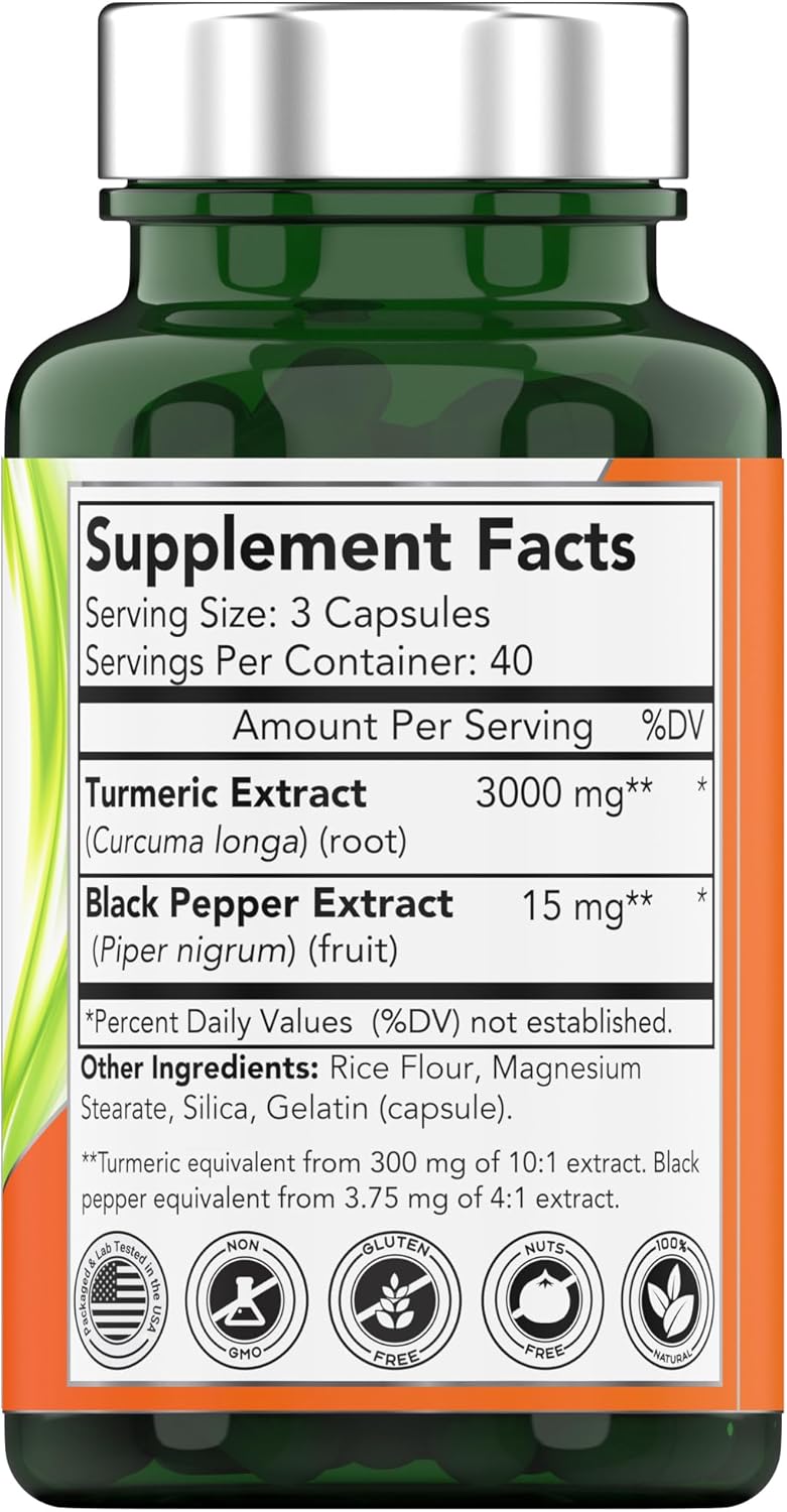 ✔️ 3000 MG of Turmeric Curcumin Per Serving | 120 Capsules