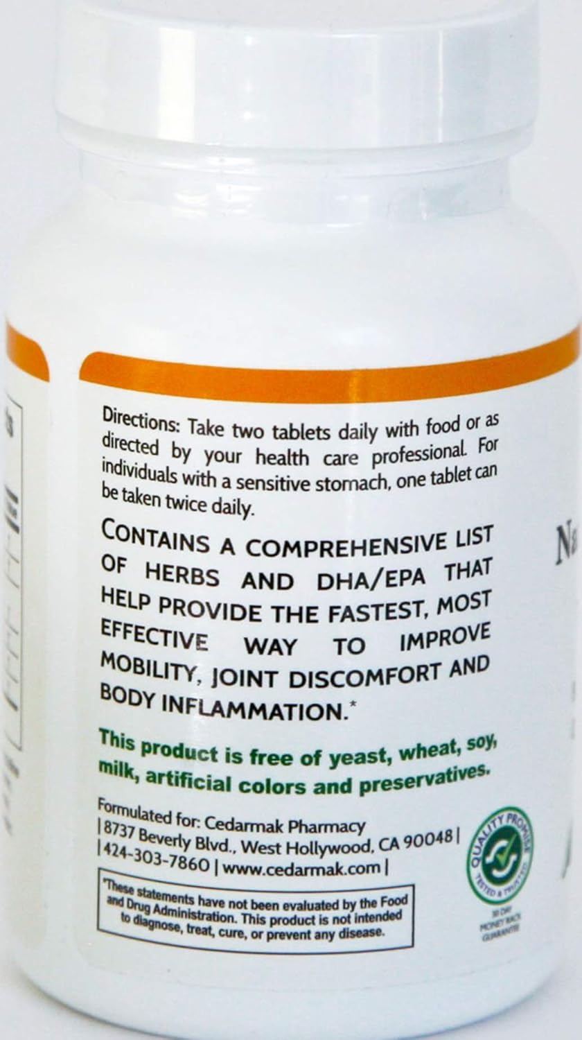 Turmeric, Ginger, BOSWELLIA, CAT Claw, Fish Oil.