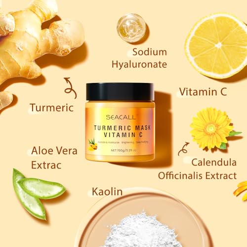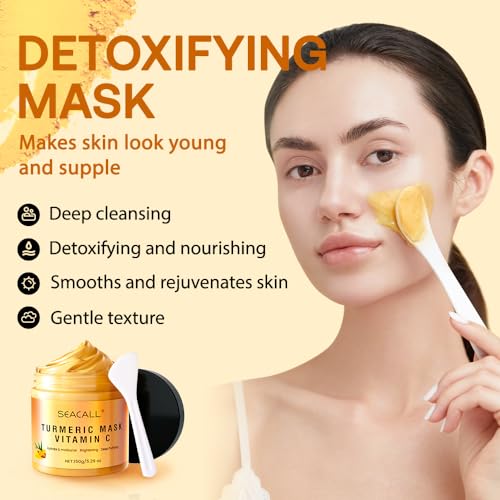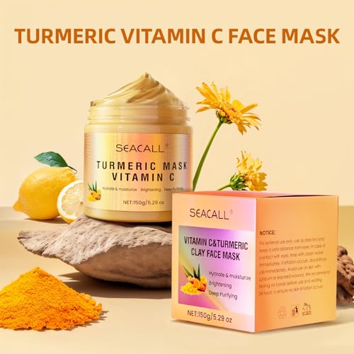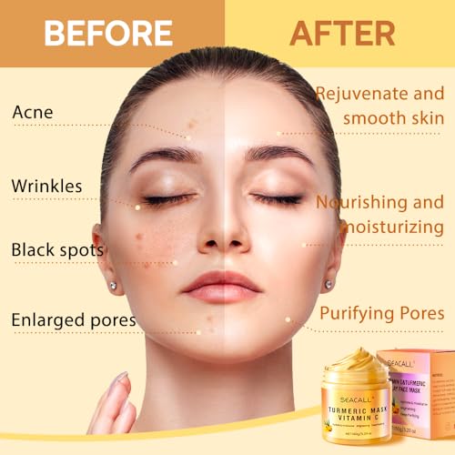 Turmeric Vitamin C Face Mask with Vitamin C, E and Aloe Vera For Radiant Skin Pore Refining, Blemish Targeting, Deep Moisturizing (5.29 oz)