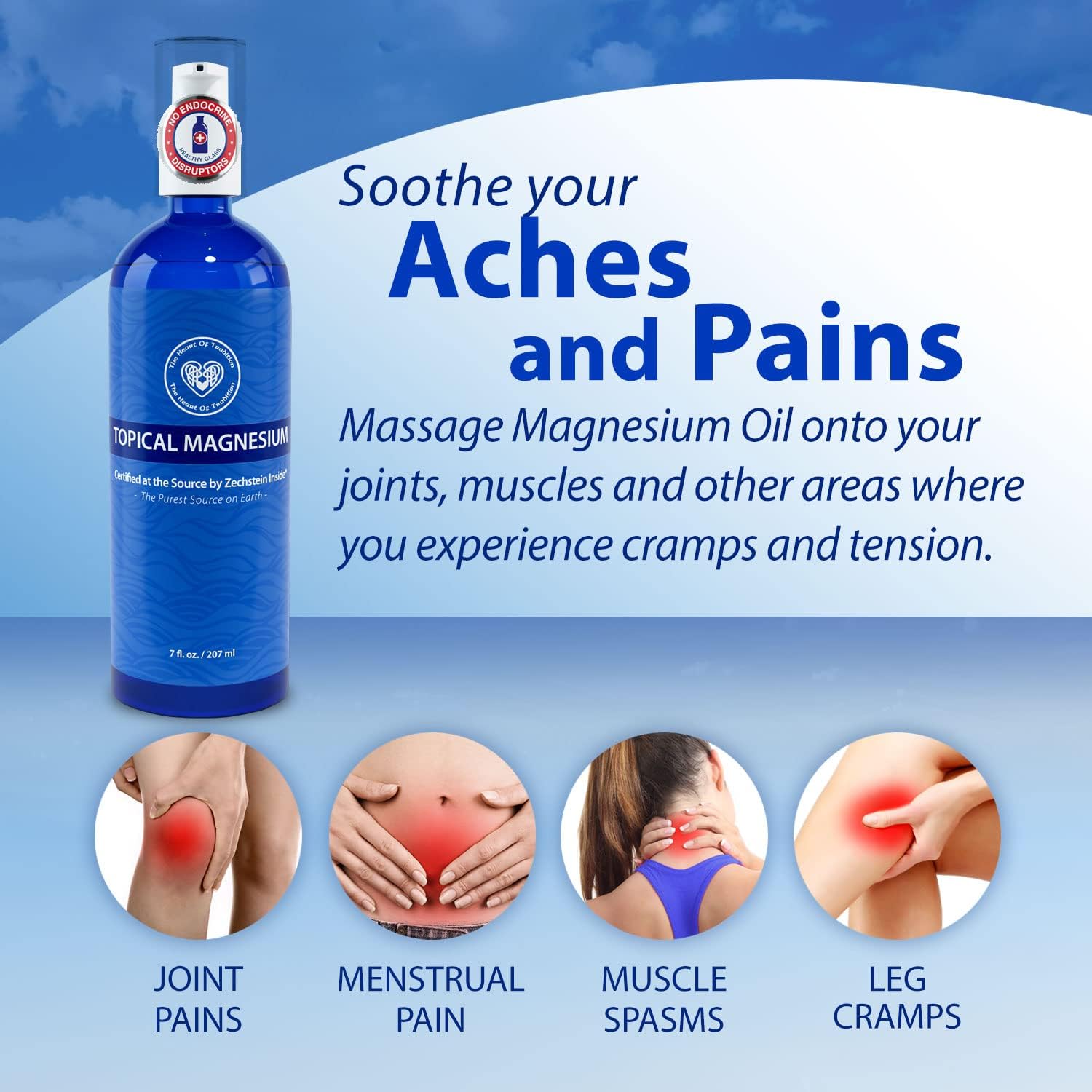 Topical magnesium oil provides a concentrated dose of pure magnesium, which is essential for maximum relief.