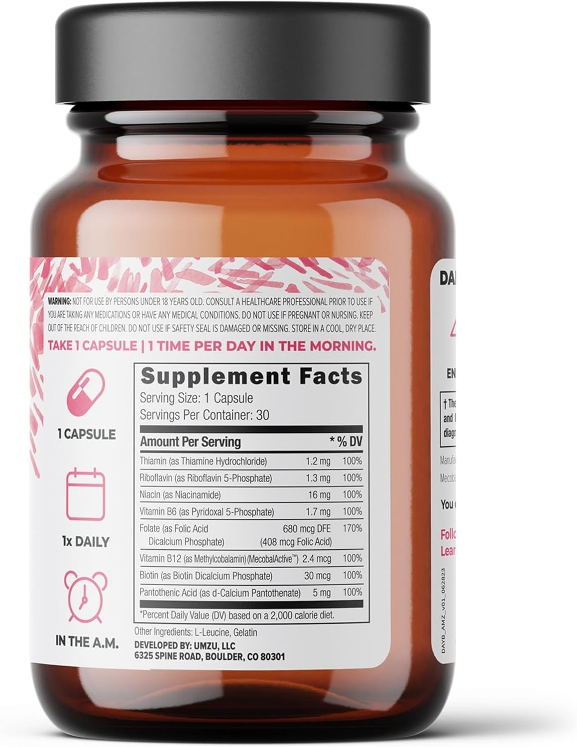 UMZU Daily B | 100% Complete Vitamin B Complex with B1, B2, B3, B5, B6, B7, B9 & B12 with Folic Acid | Supports Natural Energy Production &Cognitive Function Well (30 Day Supply | 30 Capsules)