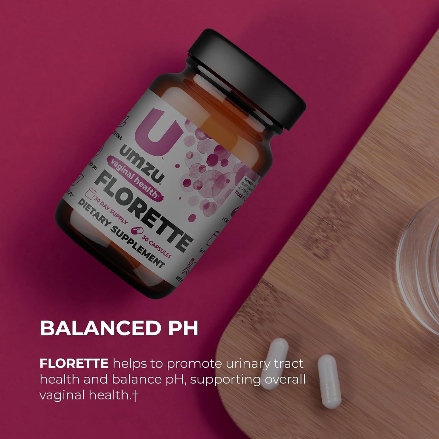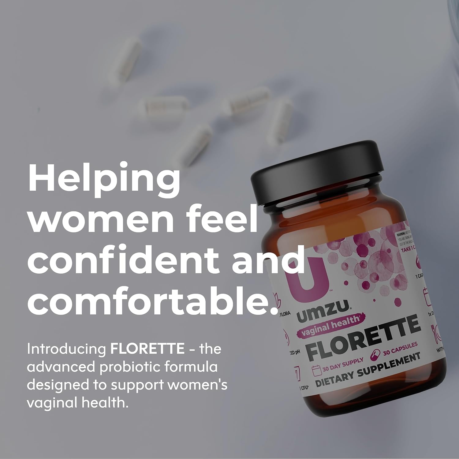UMZU Florette Vaginal Probiotic for Women with Cranberry Extract | Vaginal pH Balance, Healthy Vaginal Odor, Urinary Tract Health | 37B CFU | (30 Day Supply | 30 Capsules)
