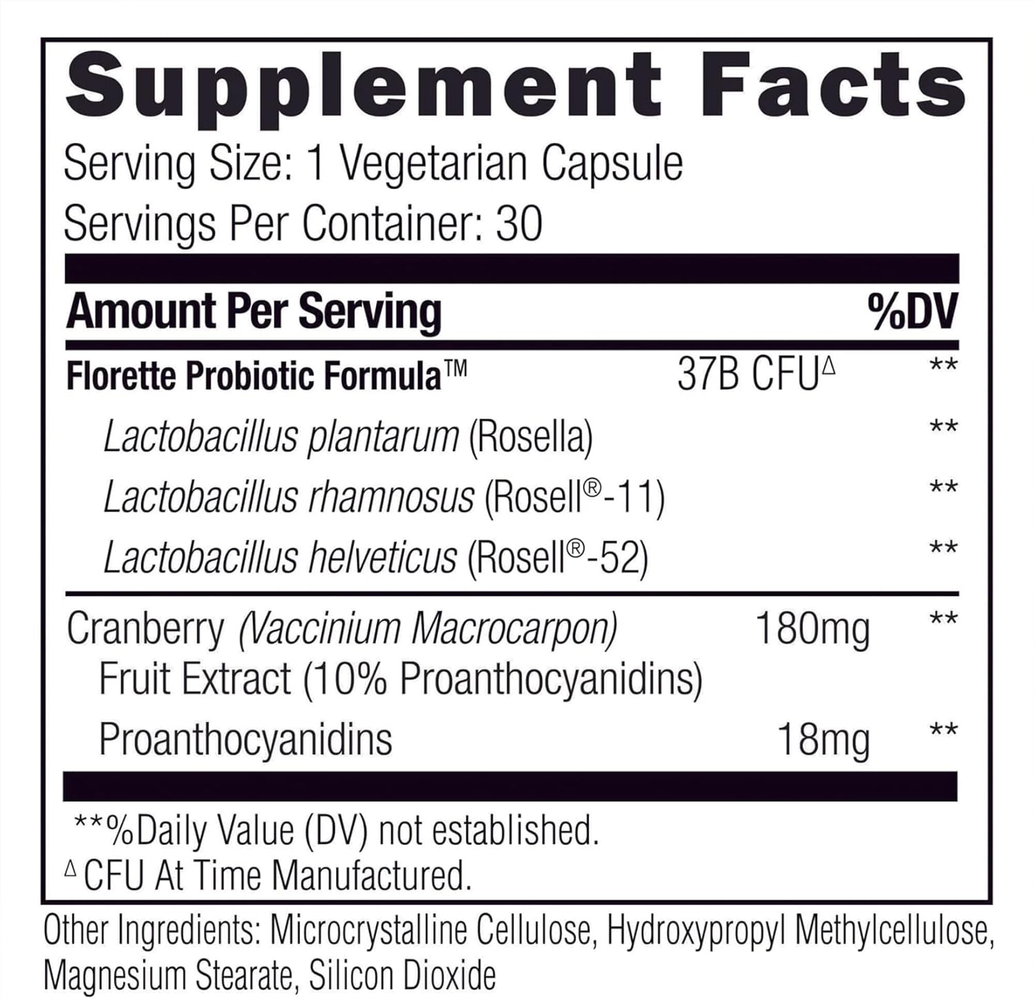 NATURAL URINARY TRACT SUPPORT- Cranberry fruit extract including Proanthocyanidins provides natural support for the urinary tract system, working in harmony with the probiotics for women’s holistic health.