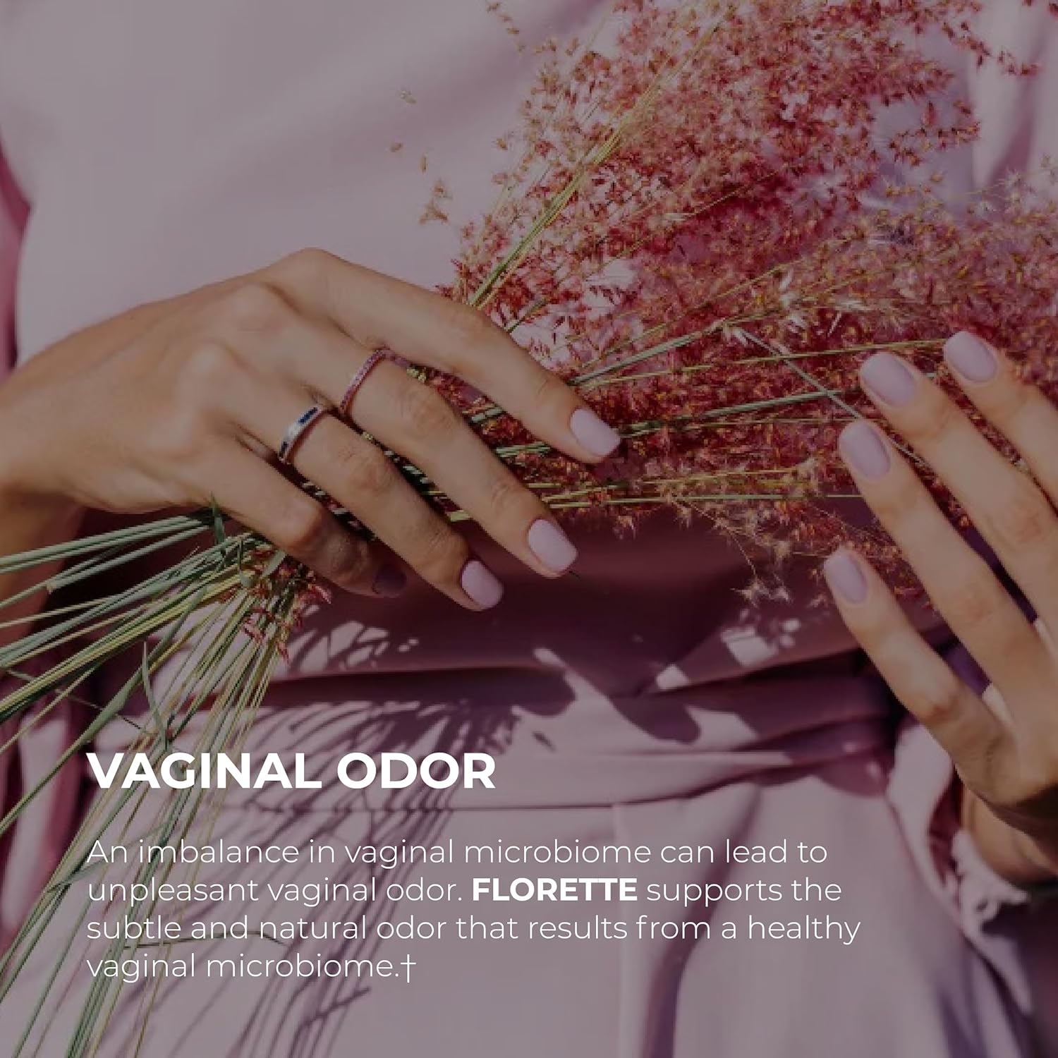 An imbalance in the vaginal microbiome can lead to unpleasant vaginal odor. Florette supports the subtle and natural odor that results from a healthy vaginal microbiome.
